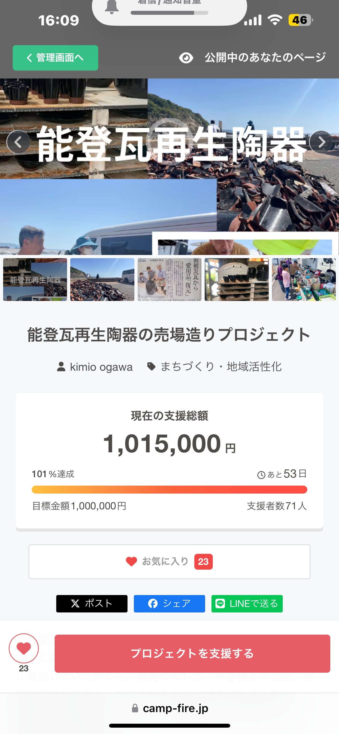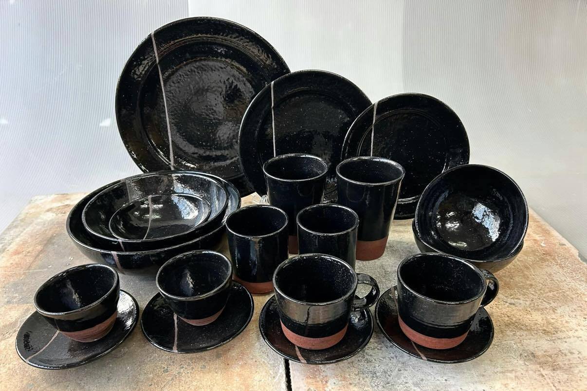 前回の売り場設営に続き、ご報告です。みなさまへのリターン発送の準備が進みつつあります。もう少々お待ちください。さて、再生陶器について、お伝えしたいことがございます。能登半島の中でも、この能登瓦をお預かりしたのは輪島市門前町の海岸線を奥に進んだ「深見」という集落でした。そこで地震による被害家屋の復旧作業を学生ボランティアらと進めていました(実は今回の報告記事は学生ボランティアの現地コーディネーターである私、山本克彦が書かせていただいてます)。黒く鮮やかな光沢、土の色とのコントラスト…割れた瓦たちを手にするだけで、その美しさを感じました。ずっしりとした重さ…「伝統的に土葺きを使用せず、全ての瓦を緊結線などで留め付ける工法」であることが特徴だいうお話もお聞きしました。廃棄するためには土嚢袋に入れる必要がありました。ボランティアの学生たちは、能登瓦をハンマーで割りながら袋詰めをしていました。なんとも悲しい気持ちになりました。そんな風景があって、なんとかこの能登瓦を活かしたい(生かしたい)と、再生陶器のプロジェクトが誕生しました。仕上がった再生陶器は“能登瓦”そのもののイメージです。しかしこのプロジェクトで姿を変えた「能登瓦 → 陶器」は修復や復元ではなく、再生なのです。むずかしい話はここまでにしますね。一度、能登瓦の姿を微粉砕し、新しい土とのバランス、焼き上げるまでの過程、温度も湿度も時間も…試行錯誤があって、再生陶器が完成しています(これは小川公男さんの職人技ですね)。再生陶器についてお伝えしたいこと、それは釉薬(ゆうやく)が塗られていない部分に見える「黒い小さな粒々」のことです。バニラアイスで見かけるバニラビーンズシード(種子)のような、よく見ると、ここにもあそこにも…と気づく粒々。これが生まれ変わる前の、最初の能登瓦の表面の黒い部分、瓦として生きて来た、その証なのです。再生陶器がみなさまに届きましたら、能登瓦の美しさ、能登半島の風景を思い描きながら、そっと陶器の隅々までご覧いただければと思います。お茶も珈琲も美味しくいただける能登瓦再生陶器…小さな粒々に思いを馳せるそんな楽しみ方もあることをお伝えしたく思いました。そして実際に能登半島への旅を計画していただき、総持寺通り商店街へお立ち寄りいただけますと幸いです。
