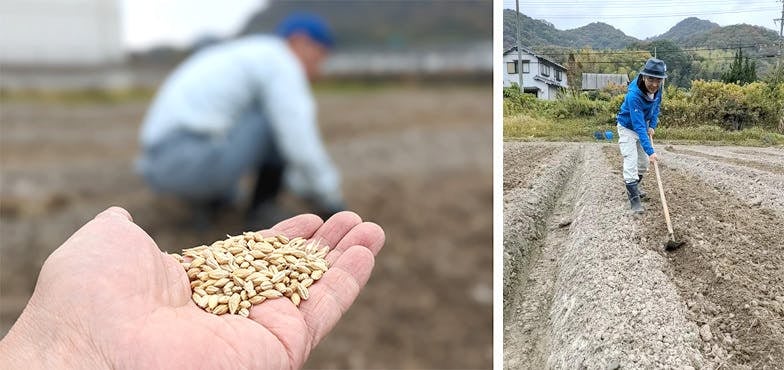 はりまグリーンラボと一緒に大麦の種まきを行い、一緒に想いを話すうちに、ビールに姫路大麦を使いたいと思うようになりました。