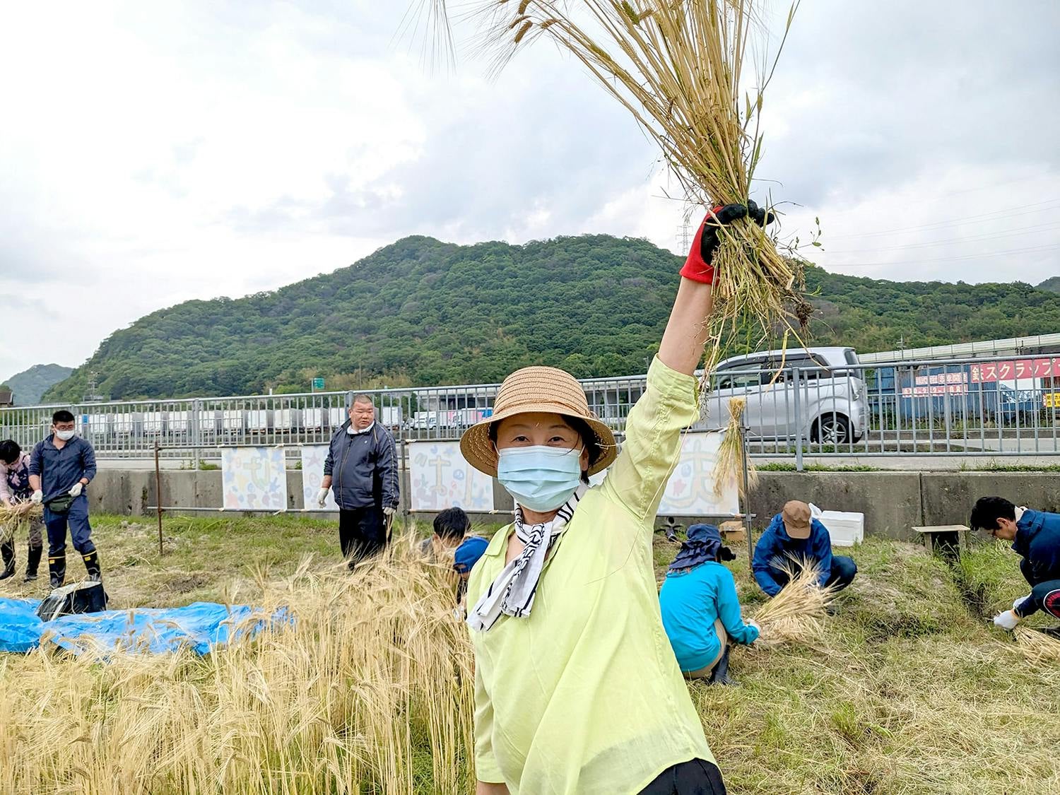 姫路市谷内地区ではりまグリーンラボの仲間たちに、 イベント告知を行い、参加した方々と収穫!