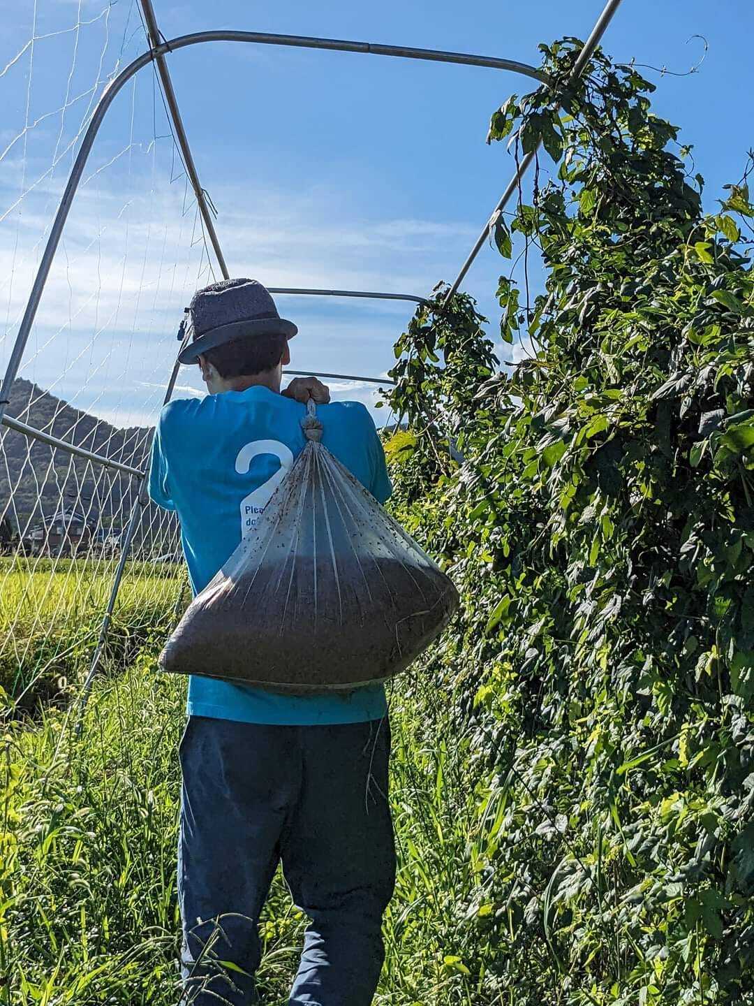そこで、まずは、畑に戻して、ホップの畑の肥料に使おうと思ったんです!