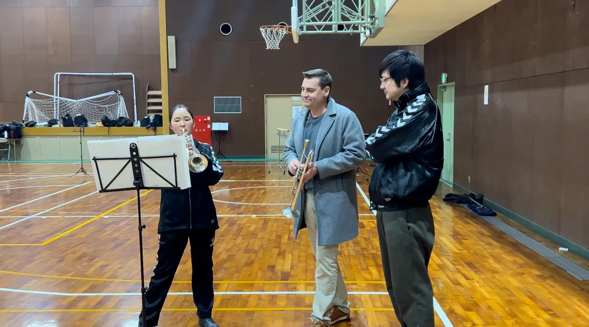 2020年、Lewis Norfleet氏(ルイス・ノーフリート氏) が、日本のスクールバンドの活動を見てみたいという事で来日され、本校吹奏楽部に視察に来られました。まだまだ、活動も演奏も未熟だった私たちに同行されたスタッフ全員で熱心にレッスンまでしていただきました。生まれた国も違う、言葉も通じない、初対面の日本の高校生のために一生懸命レッスンしてくださったあの姿にとても感銘を受けたのを覚えています。まさに、『音楽に国境はない』と感じた瞬間でした。