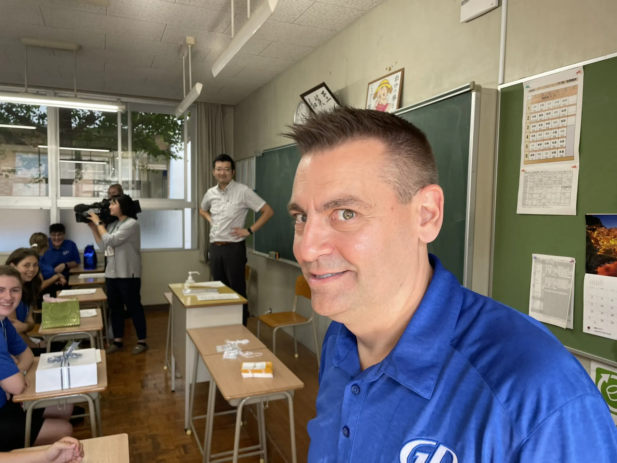 2024年、ついにLewis氏率いるグランツパス高校ジャズバンドメンバー総勢40名が来日し、約10日間本校全校生徒と交流を行いました。全クラスにメンバーが入り、お互いの自己紹介や国の紹介などを行い、プレゼントの交換を行うなど、とても有意義な時間を過ごしました。吹奏楽部もジョイントコンサートということで、全校生徒を観客に、約2時間大熱狂のコンサートを実施しました。グランツパス高校の皆さんの演奏は、日本の高校生とは一味違う演奏で、吹奏楽部員じゃない本校生徒や職員も大興奮の様子でした。こんなに素敵な時間を共有してくれたLewis氏さんをはじめとするグランツパス高校の皆様には感謝の気持ちしかありません。