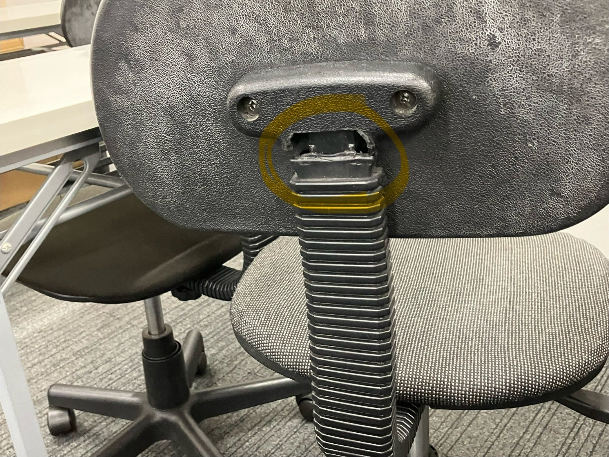 破損した椅子の背もたれ部分