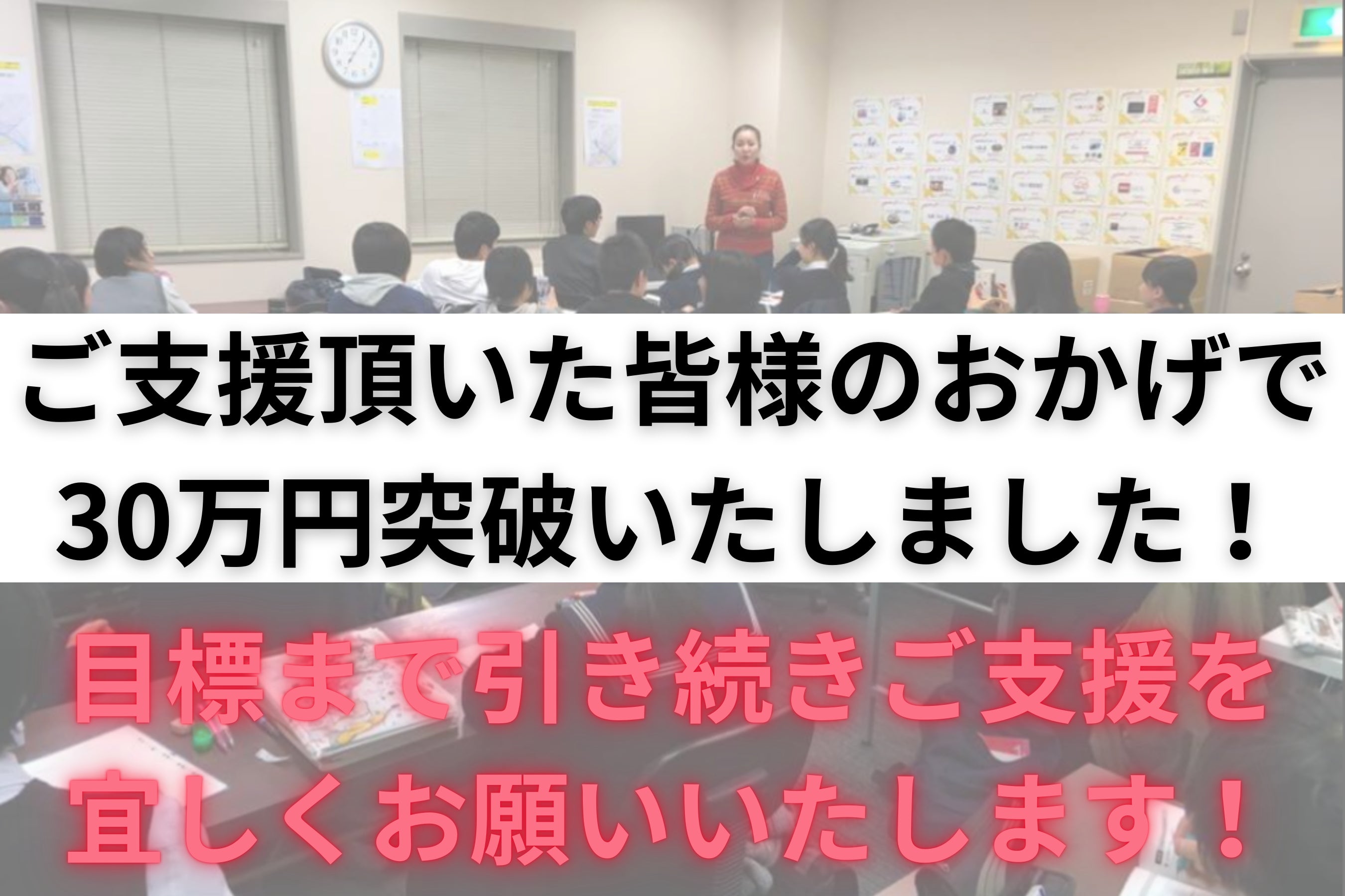 2025/02/05 20:3212月26日から始まった今回のプロジェクトですが、1月19日に目標の50万円を達成することができました!本当にありがとうございます!ネクストゴールでいただいた支援金では、学習机の更新、パーテーション、学習タブレットと子供たちの環境整備に有効に活用させていただきます。皆様のご支援が、子供たちの学習環境の質を上げ、安心して学習できる場所に生まれ変わるきっかけとなります。プロジェクト終了まで何卒よろしくお願い申し上げます! もっと見る