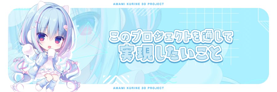 自分の大好きな「ダンス」を100%の表現で皆様へお届けするために、クオリティの高い3Dモデルを制作したいです!そして、思い描いていた「歌って踊れるアイドルVTuber 天海くりね」を最高の形で皆様へお届けします。