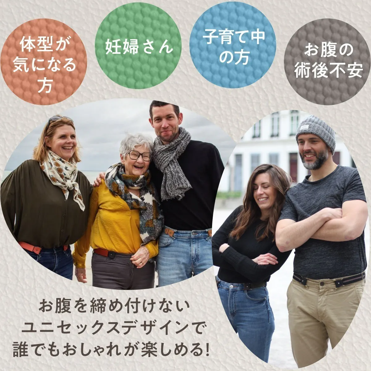 Libelté(リベルテ)のベルトはお腹の真ん中に当たる硬い金属のバックルを無くした全く新しいベルト