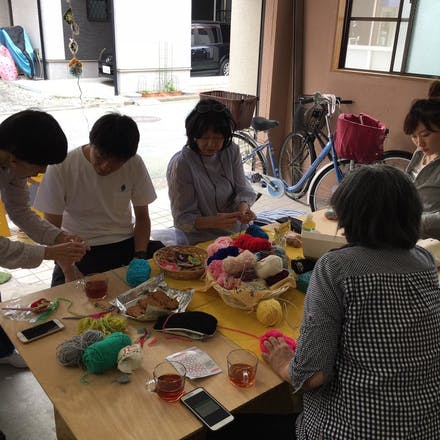 今日は13時から工事前のココシバ店舗予定スペースで、ワークショップを開催しました。四角形のモチーフを2枚編み、1枚は店舗のひざ掛け用として、1枚はキーホルダーにして編んだ方に持って帰っていただくというもの。