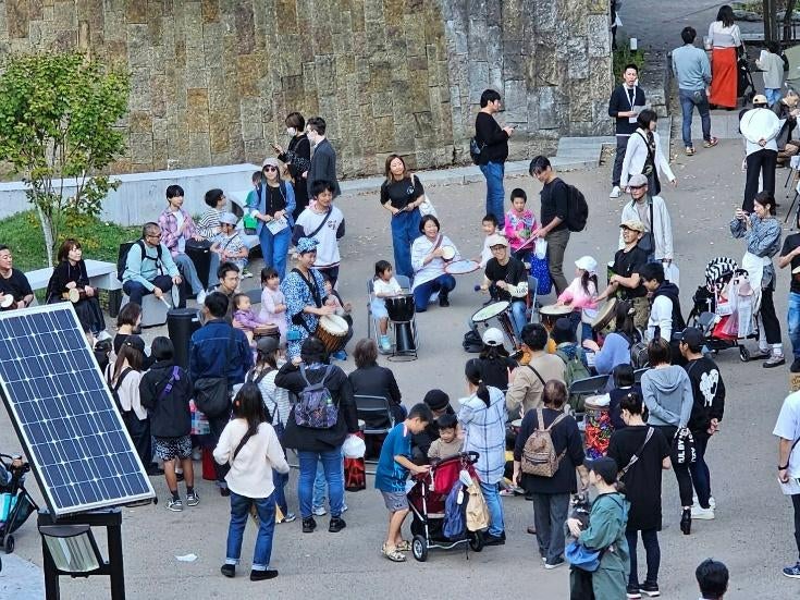 ドラムサークルは、楽器をたたくだけでなく、その場に居合わせた人同士が即興演奏しながら、ノンバーバルコミュニケーションを体験することができます。