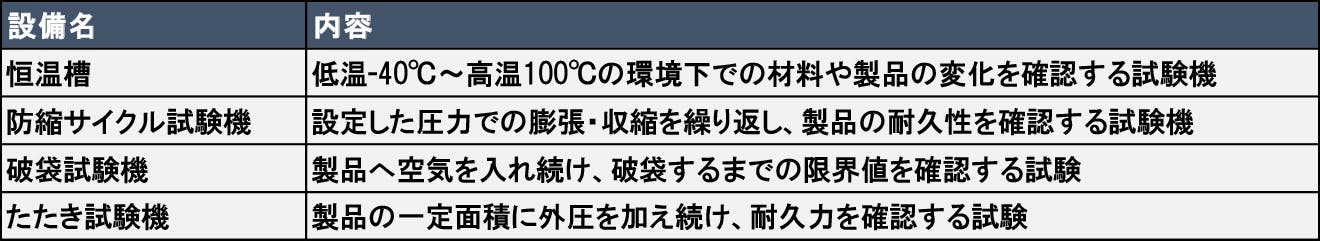 さらに、日本工業規格(JIS)に基づいた性能試験の実施、その他様々な環境下での製品の耐久性などを確認する社内試験も行っています。