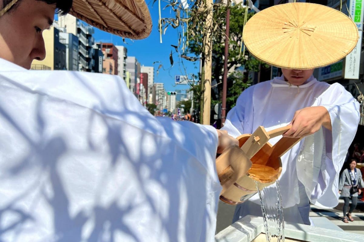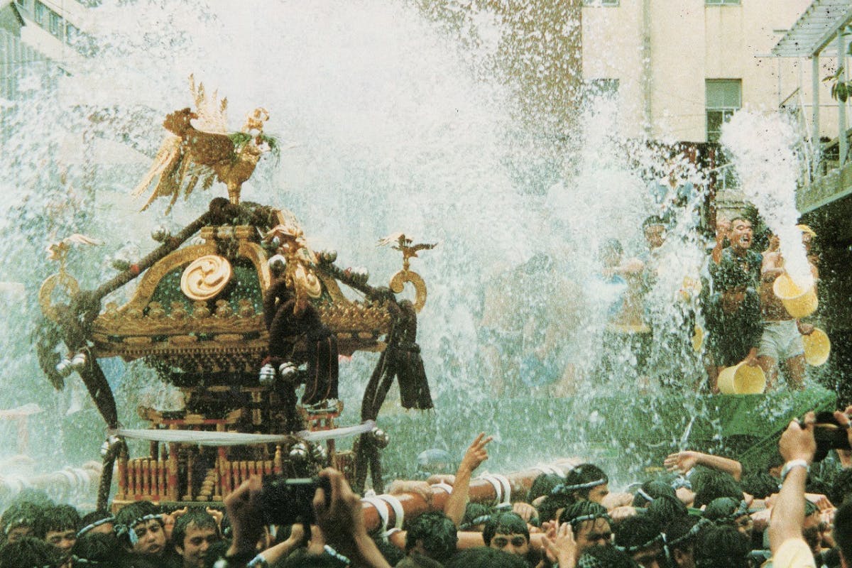 開催時期が秋から夏へ変わったことで、やがて沿道の人々が担ぎ手に水を掛けるようになりました。和を背負う意の「わっしょい」の掛け声の担ぎ手に水を浴びせる光景が名物となり、現在の「水掛け祭り」へと受け継がれています。