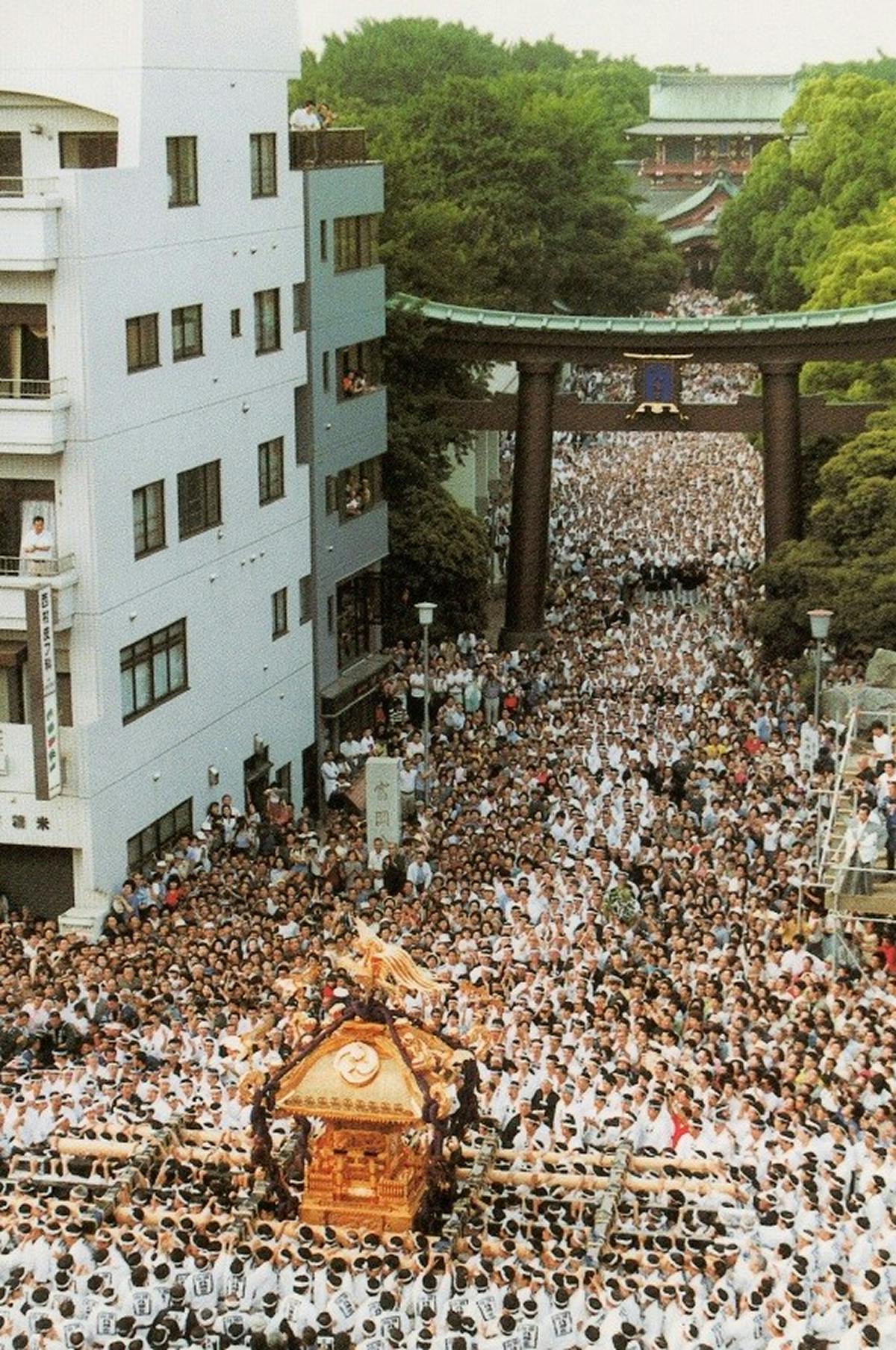 江戸時代の祭礼では、御本社神輿の渡御と町会の山車巡行が中心でしたが、明治の文明開化によって街中に電線が張り巡らされると、山車に代わって町神輿が誕生。明治42年(1909)には、神輿61基、山車6本による大規模な神輿渡御が行われました。