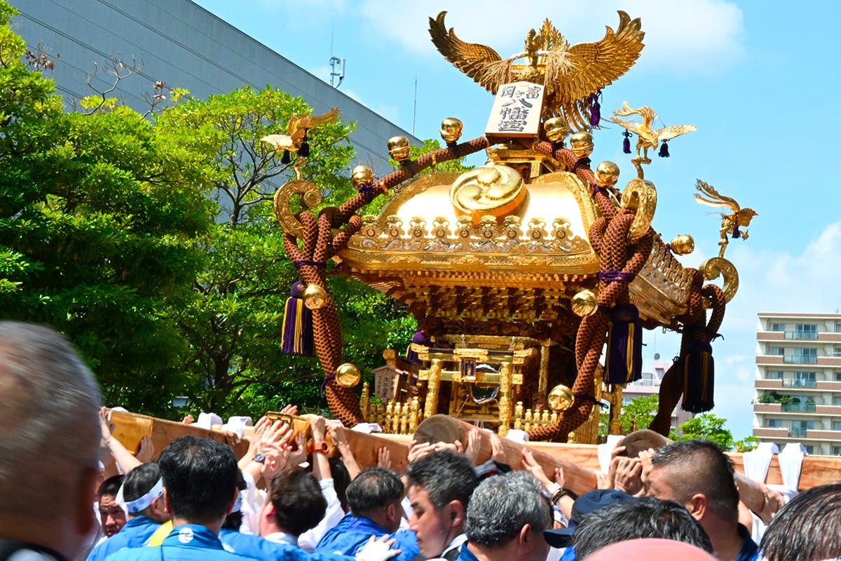 地域全体が熱気に包まれるこの祭りは、1年ごとに「本祭り」「二の宮神輿渡御」「子供神輿連合渡御」が順に行われるのが特徴です。今年度(2025年)は7年ぶりに神社の神輿である二の宮神輿が渡御し、大いに賑わいました。来年(2026年)は本祭りにあたります。町の神輿53基が勢揃いする各町神輿連合渡御が行われ、今年以上の盛り上がりが期待されています。
