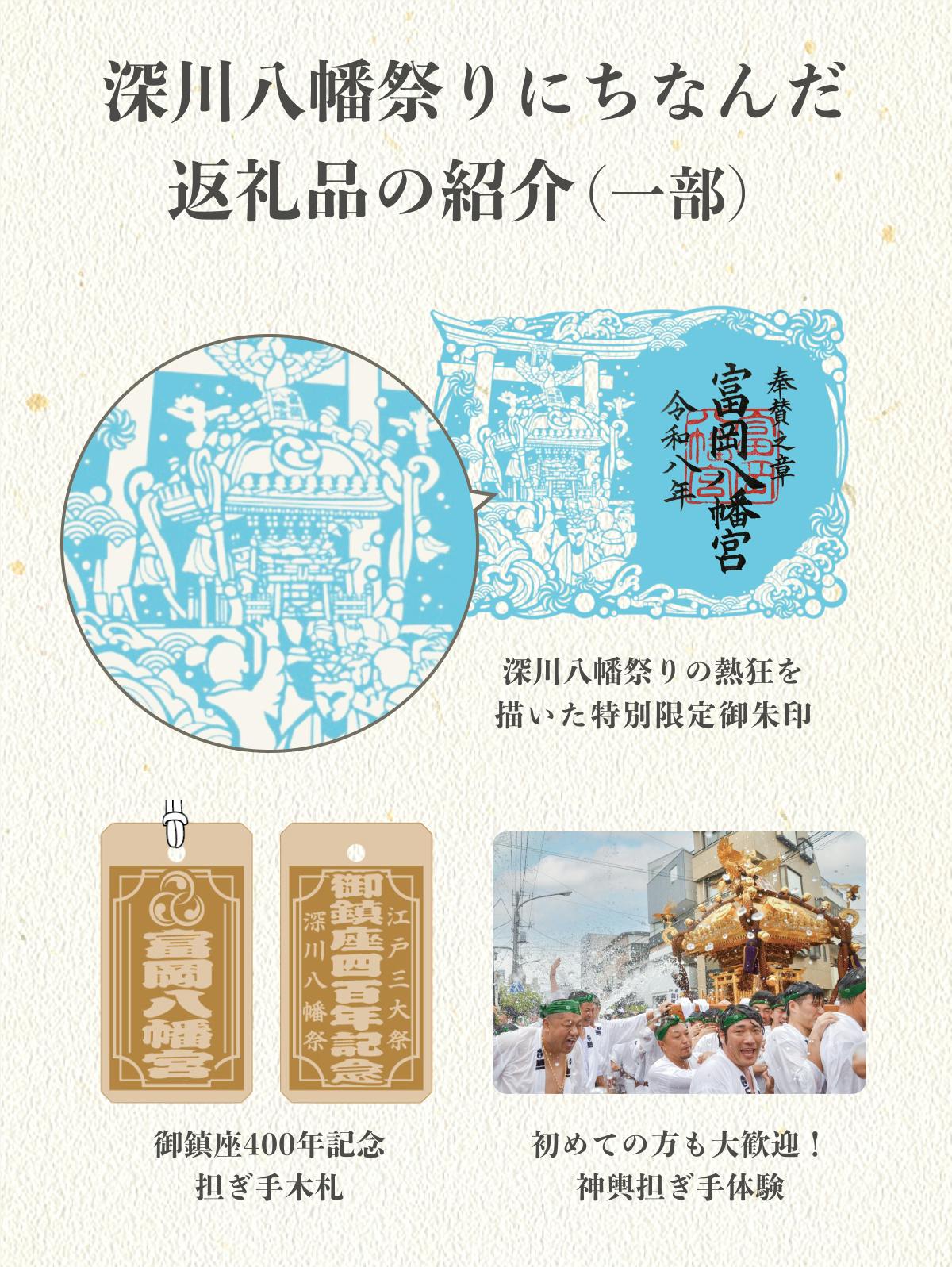 今回のテーマである「深川八幡祭り」にちなんだ返礼品をご用意いたしました。