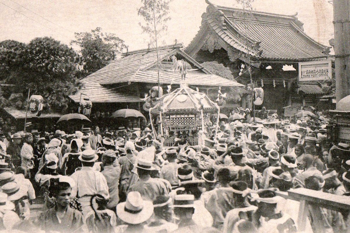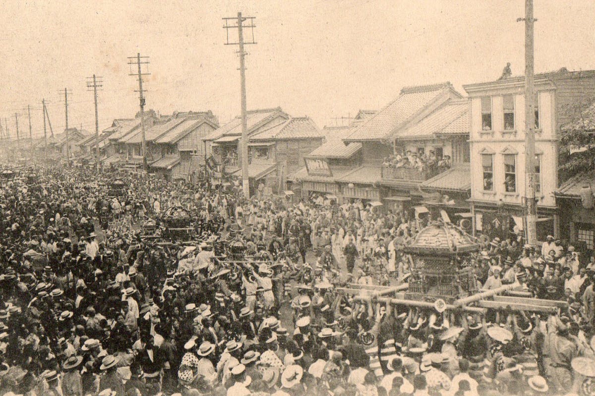 江戸時代の祭礼では、御本社神輿の渡御と町会の山車巡行が中心でしたが、明治の文明開化によって街中に電線が張り巡らされると、山車に代わって町神輿が誕生。明治42年(1909)には、神輿61基、山車6本による大規模な神輿渡御が行われました。