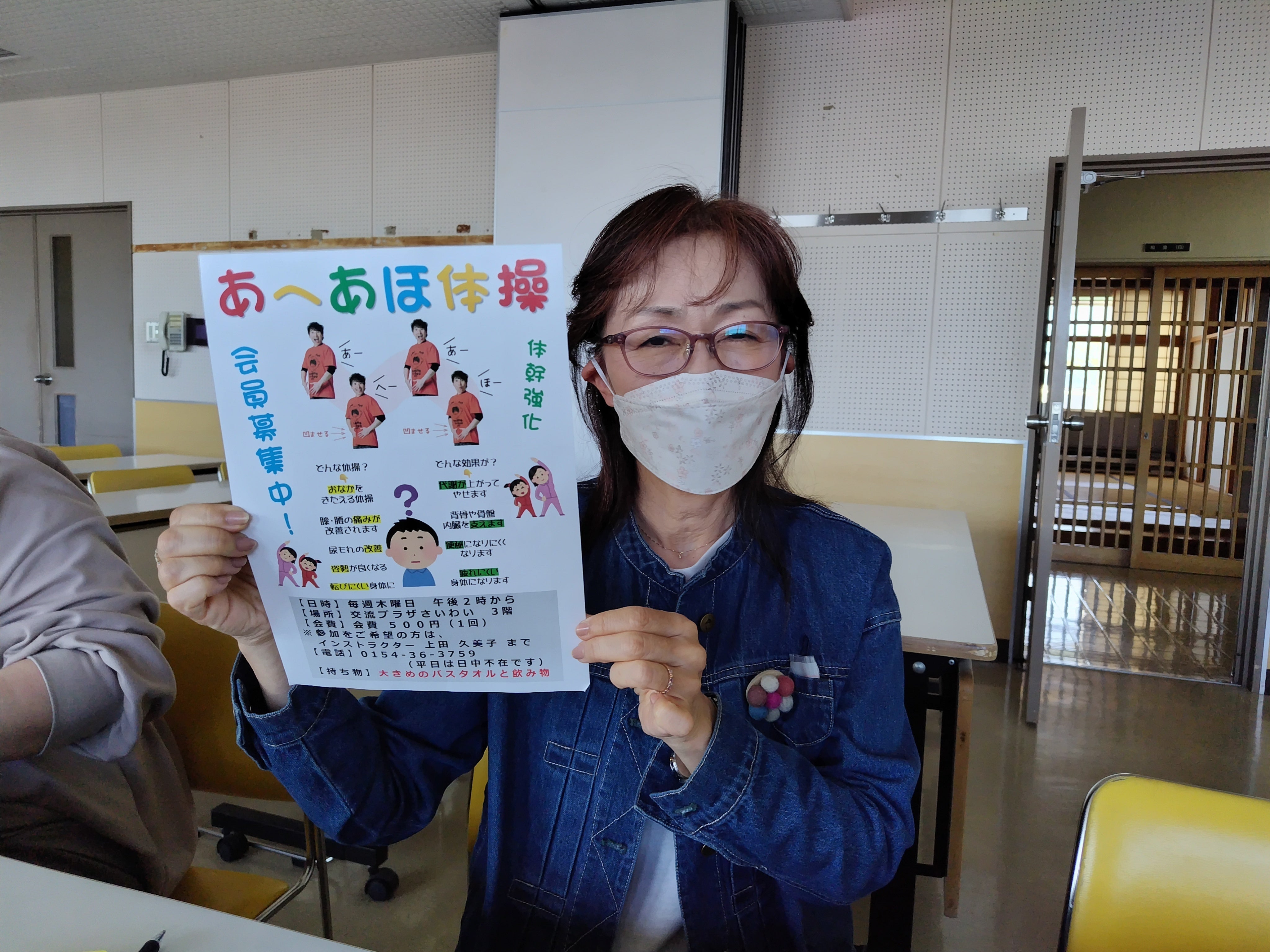 (左奥)吉田さんは、火曜日と木曜日の体操教室に参加されており、別の曜日にも体操教室に参加したいというお話をされました。