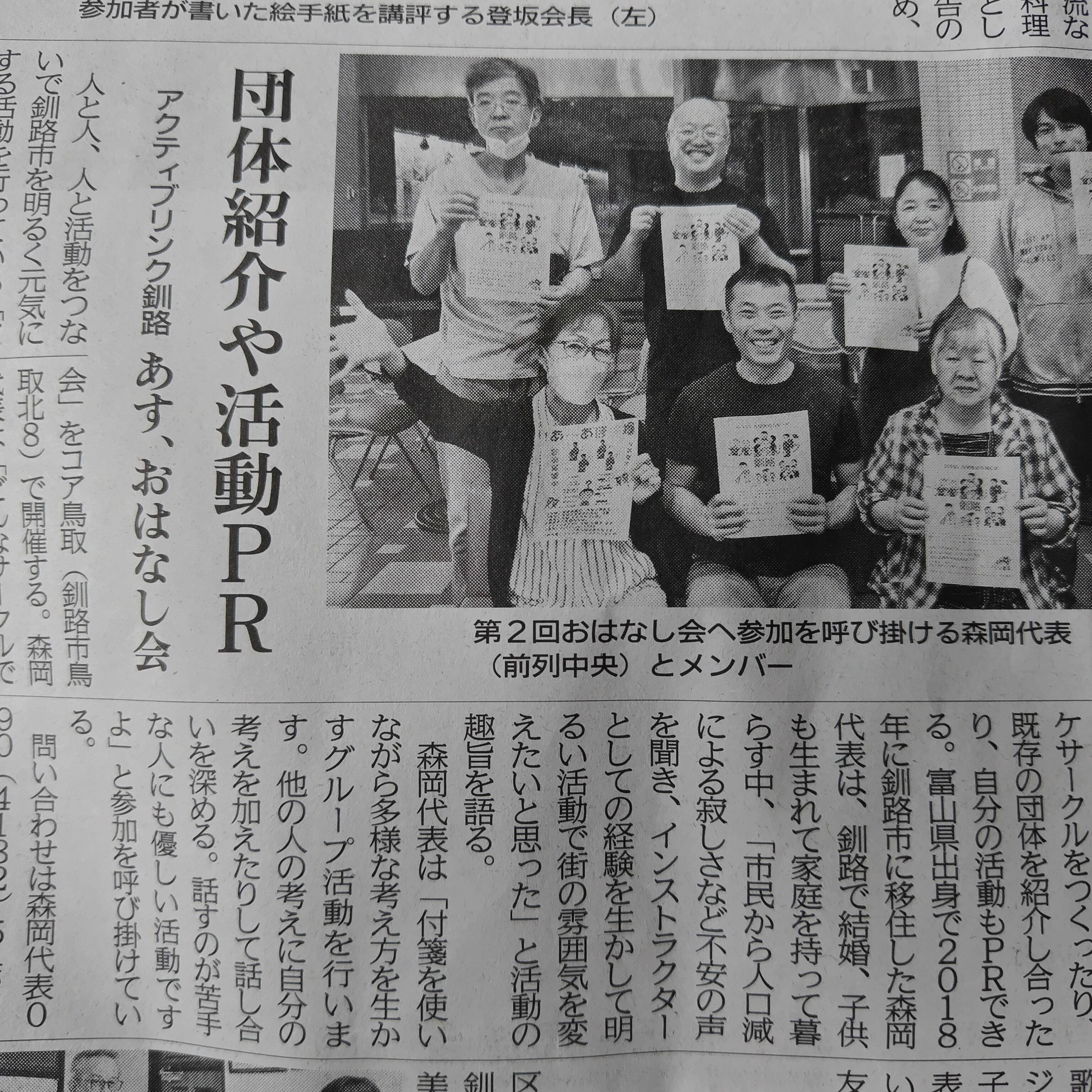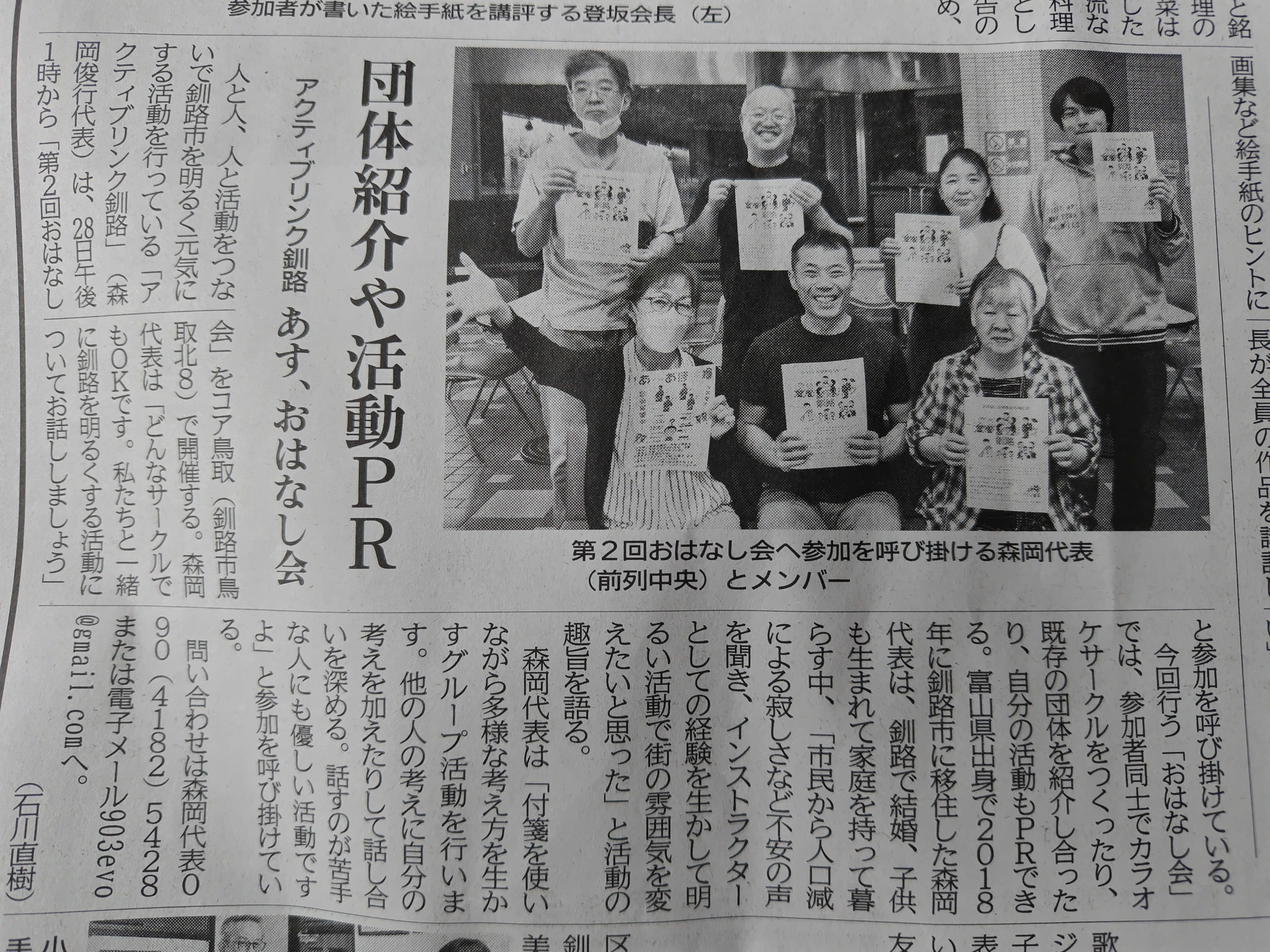 後日、釧路新聞の2面の目立つ位置に大きく記事を掲載していただきました。