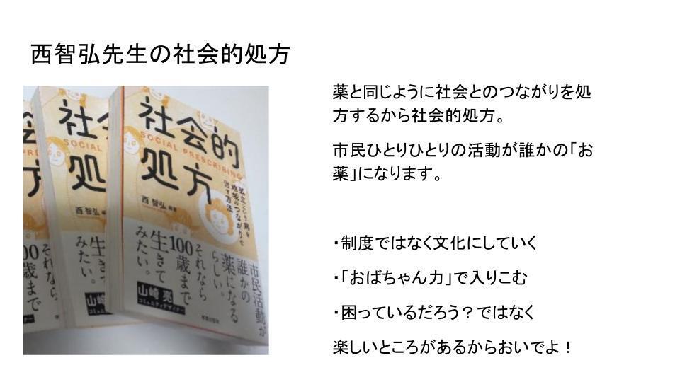 そこで私は、西先生の社会的処方に感銘を受け、地方から日本を変える、釧路から日本を変えようと考えました。