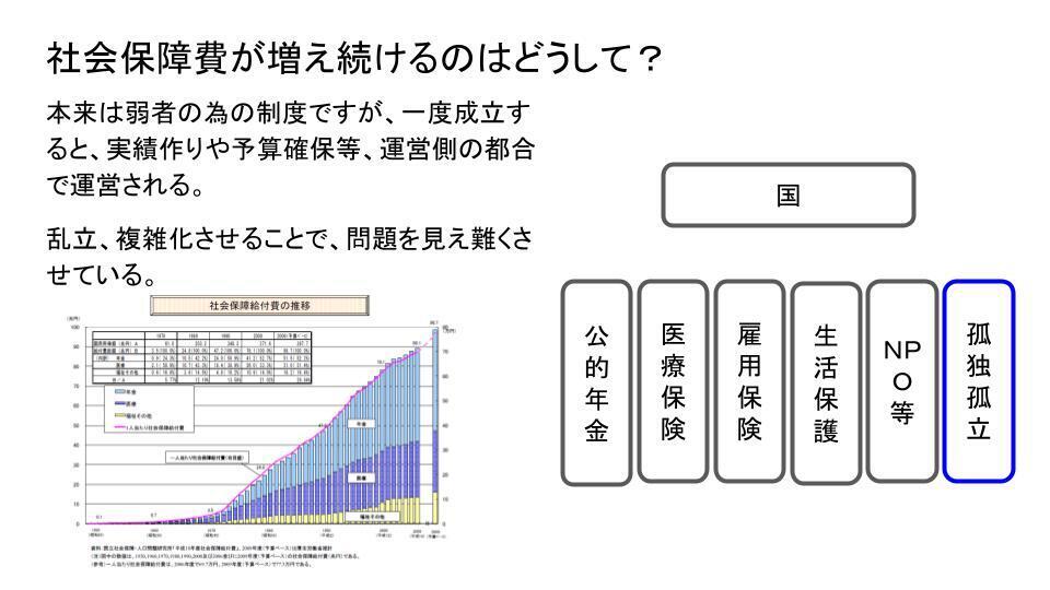だからこそ、孤独と孤立が社会問題化した今、新しい共助の形を創り出し、公助への過度な依存の流れを変えることが必要だと考えています。