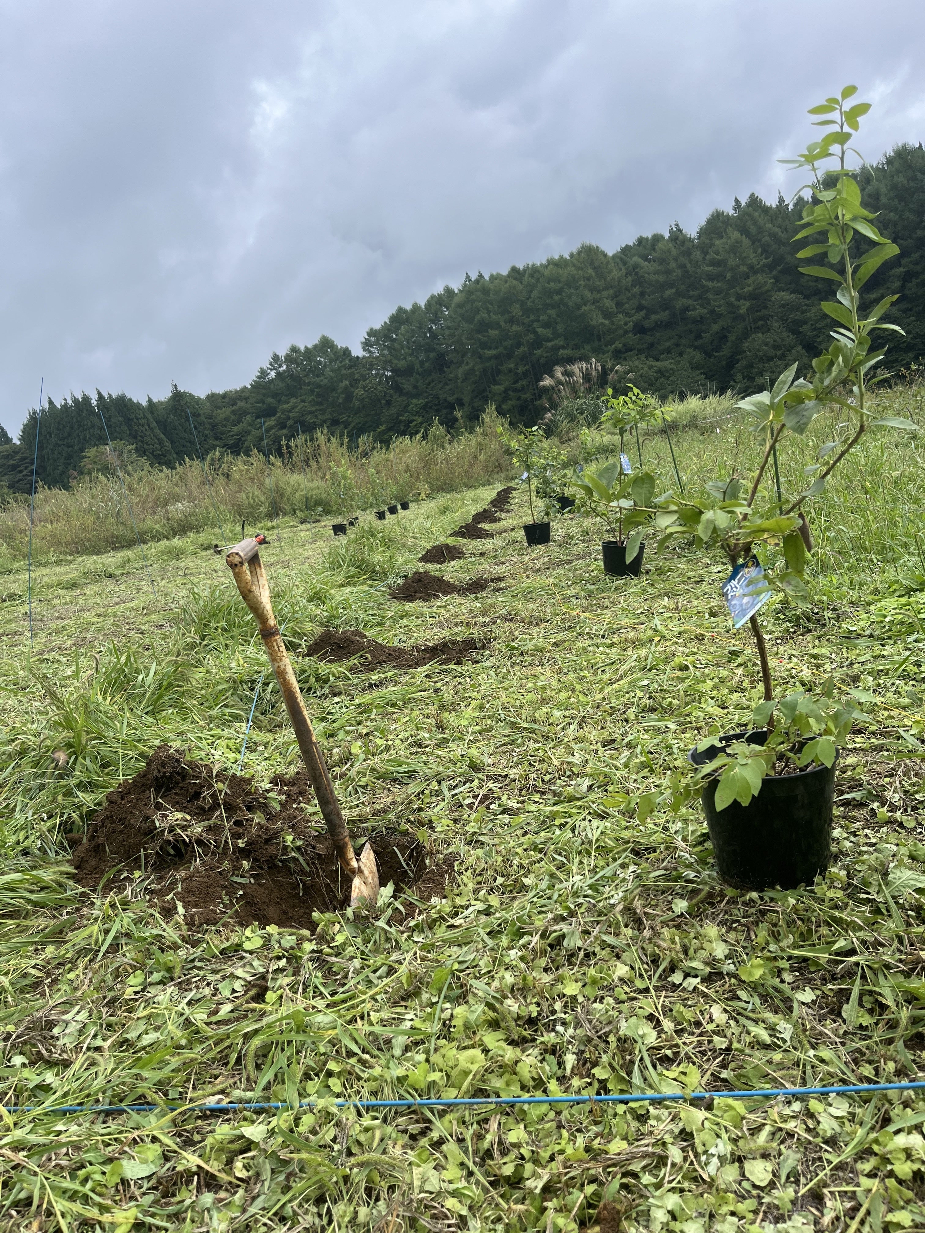 皆さまからのご支援を使わせて頂き購入した第2弾のブルーベリーの苗木達50本が先日農場に到着し、植えつけ作業を開始致しました。