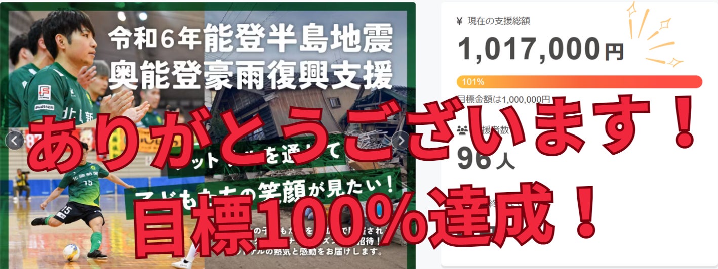 この度、皆さまの温かいご支援が形となり、目標金額を100%達成することができました。