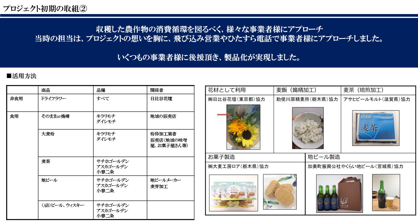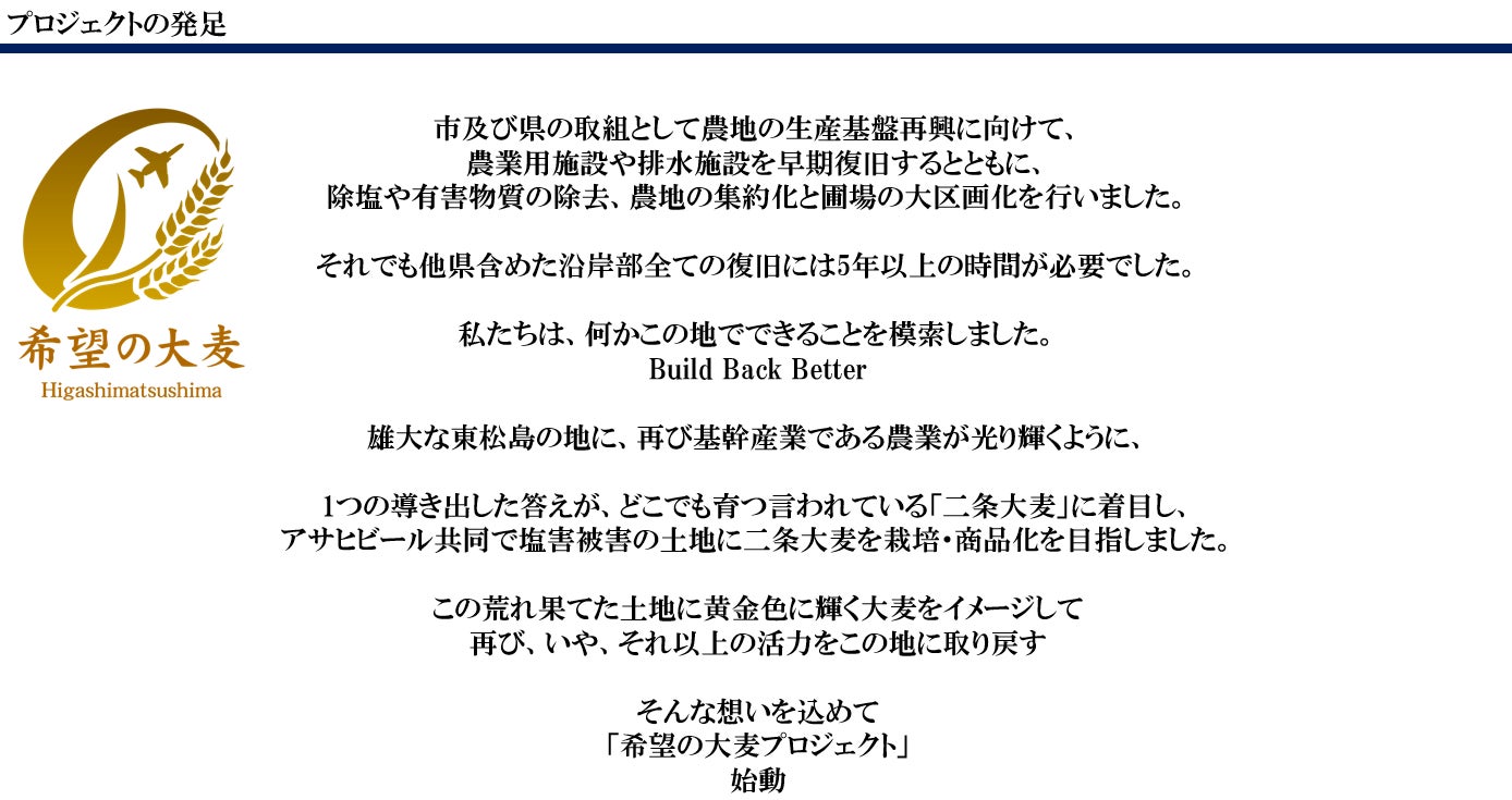当社は、「希望の大麦プロジェクト」の一端を担う位置づけとしております。