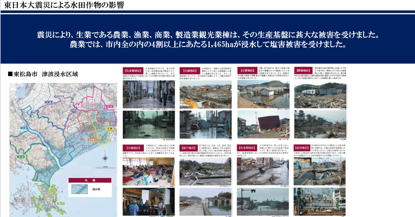 東松島市の農業法人は東日本大震災を受け、区画整理された各エリアの農業を支えるために農家が立ち上がり、変わりゆく環境に負けじと創意工夫の営農を行っております。
