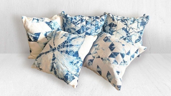 同じような絞り方をしても、革の状態や藍の入り方、気候なども関係し、全く同じものを作ることはできないので、自分だけの「世界に1つのクッション」になります。