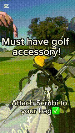 Scrubiはゴルフバッグ、クリックギア、ゴルフカーに取り付け、外出先でクラブを掃除出来ます。