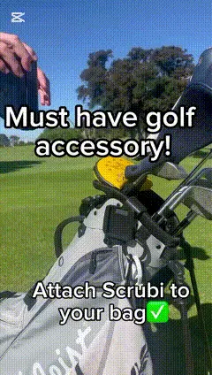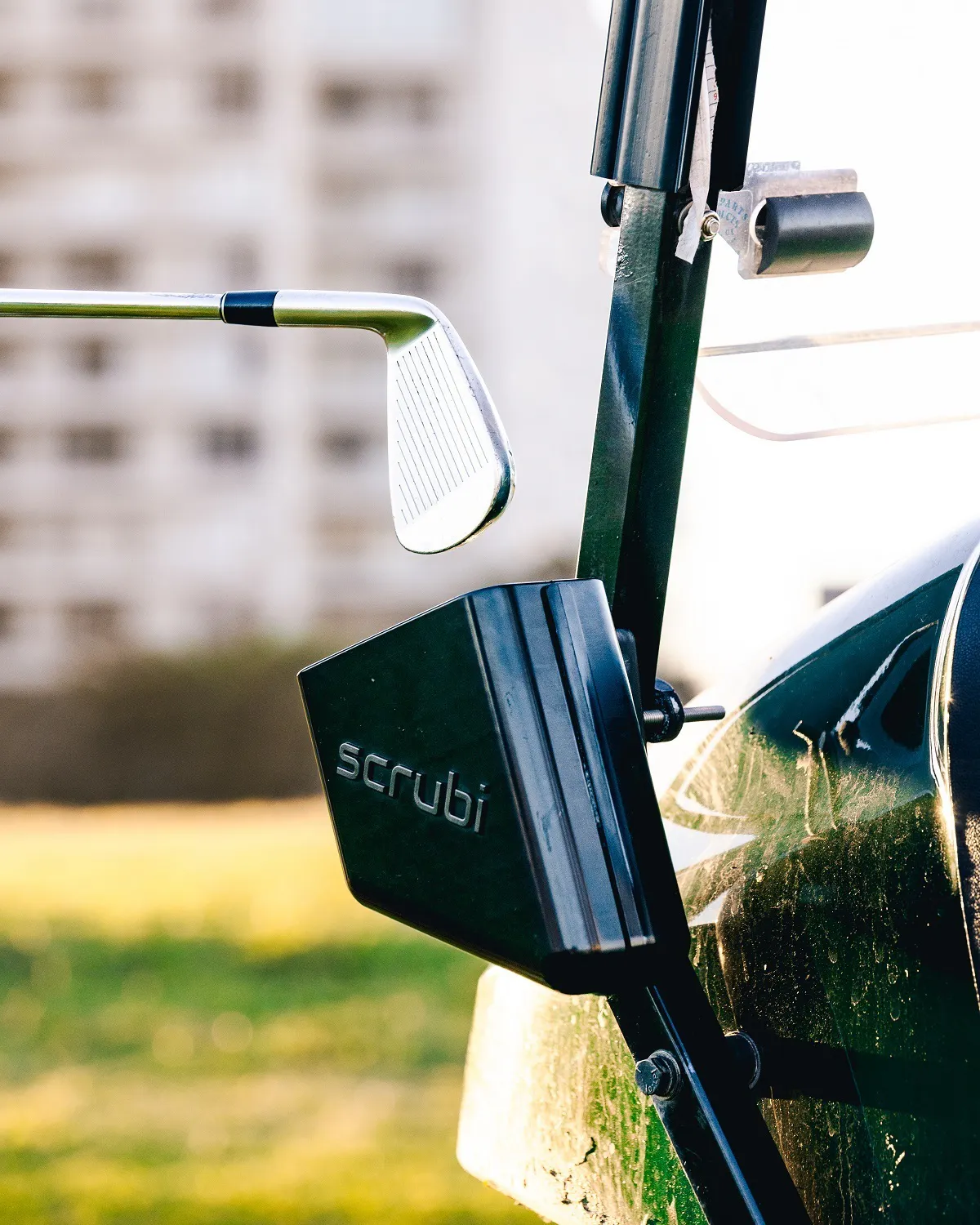 Scrubiはゴルフバッグ、クリックギア、ゴルフカーに取り付け、外出先でクラブを掃除出来ます。