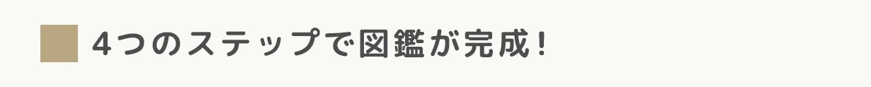 しゃしん図鑑は4つのステップを通して、楽しく図鑑を完成させます。