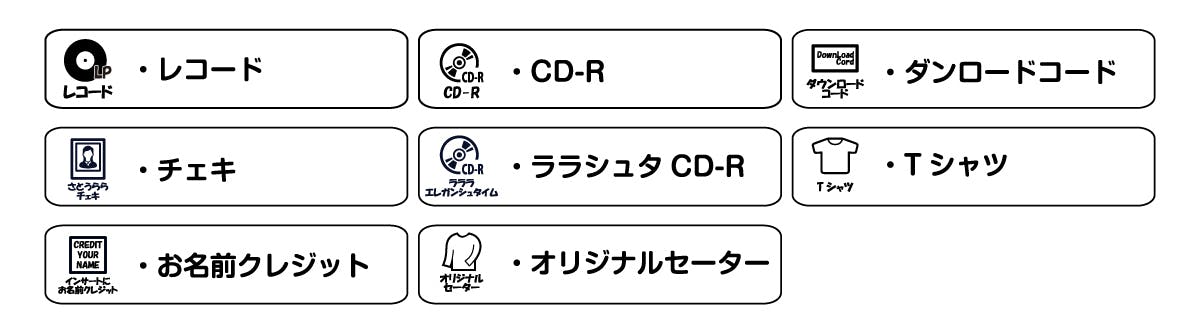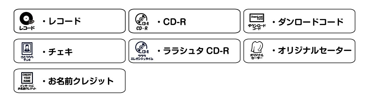 < Tシャツ + オリジナルセーター + お名前クレジット + チェキ + ラジオCD-R + レコード + CD-R + ダウンロードコード >