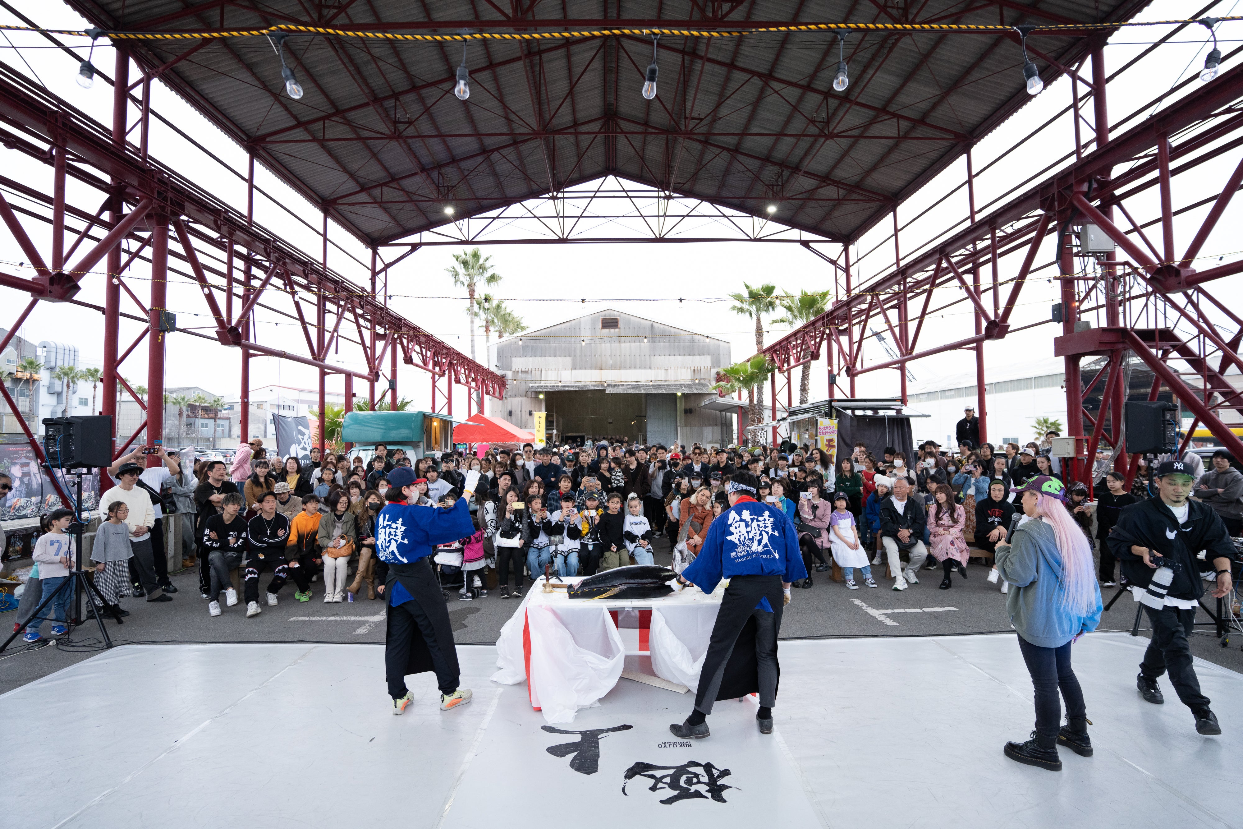 私たちは「一般のお客様も心から楽しめる空間」を作ることにこだわっています。たとえば過去には、野外にて美味しいフードを提供するキッチンカーや、迫力満点のマグロの解体ショーなど、多彩なコンテンツをご用意しておりました。会場のレイアウトから内容の一つひとつに至るまで、「来場してよかった!」と心から思っていただける工夫を凝らしています。
