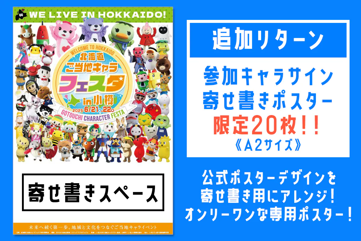 2025年6月、小樽で開催される本イベントでは、キャラクター同士の交流や地域特産品の紹介など、来場者のみなさまが楽しめる企画を多数ご用意。さらに、北海道の自然や文化、おいしい特産品が体感できる魅力的な内容をお届けします!