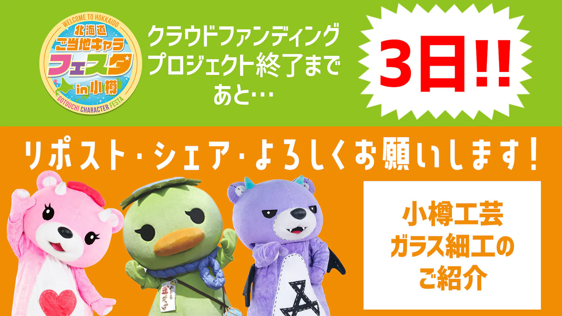 「北海道をもっと元気にしたい」「新しいご当地キャライベントを応援したい」という皆さま、ぜひ私たちと一緒にこのプロジェクトを盛り上げてください!