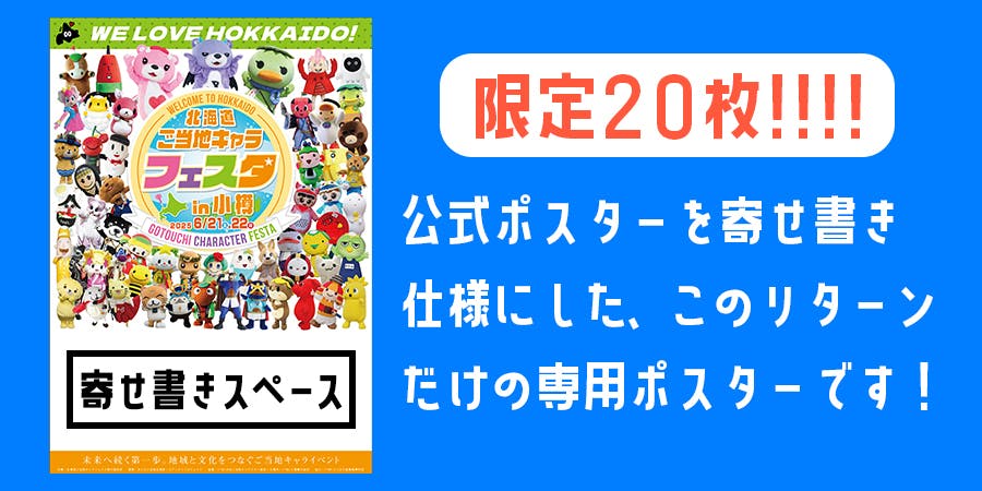 おたる運がっぱ、コアックマ、アックマの直筆サインは絶対に入ります!イベント中のお忙しい中でキャラさんたちにサインを書いていただく事もふまえ、限定20枚!