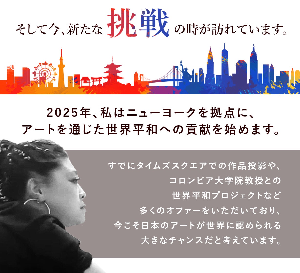 2025年、私は新たな挑戦の舞台として活動拠点を日本からニューヨークへ移します。