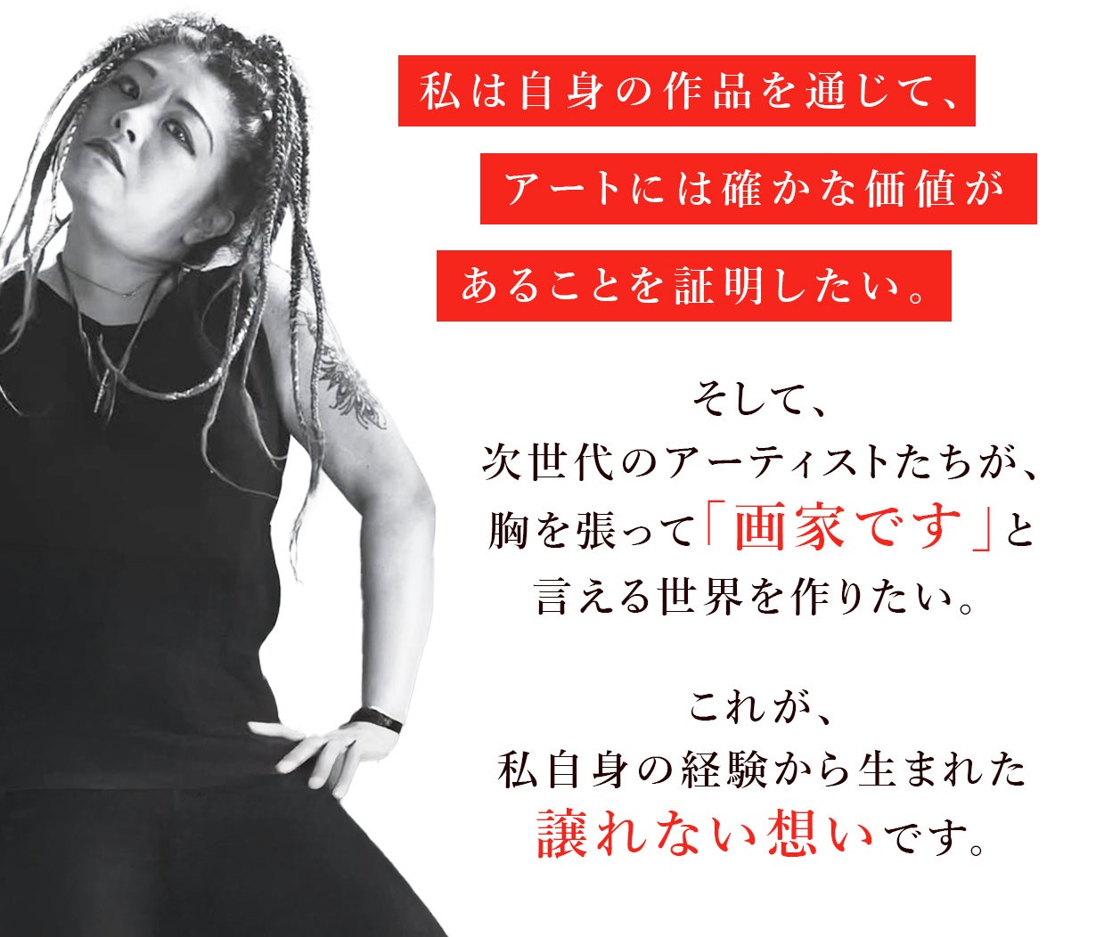 私は自身の作品を通じて、アートには確かな価値があることを証明したい。