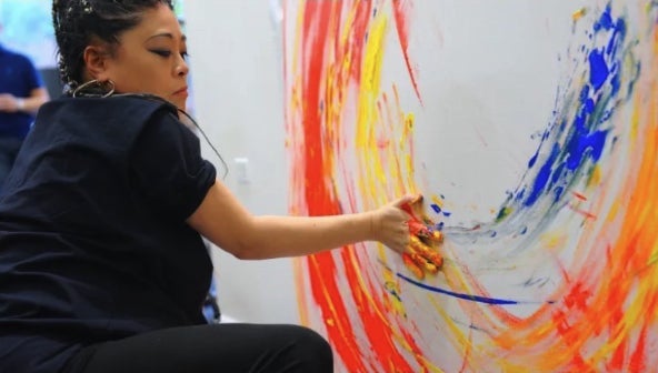 どんな音楽にも合わせて即興で絵を描けることを活かし、アートパフォーマンスを通じて、