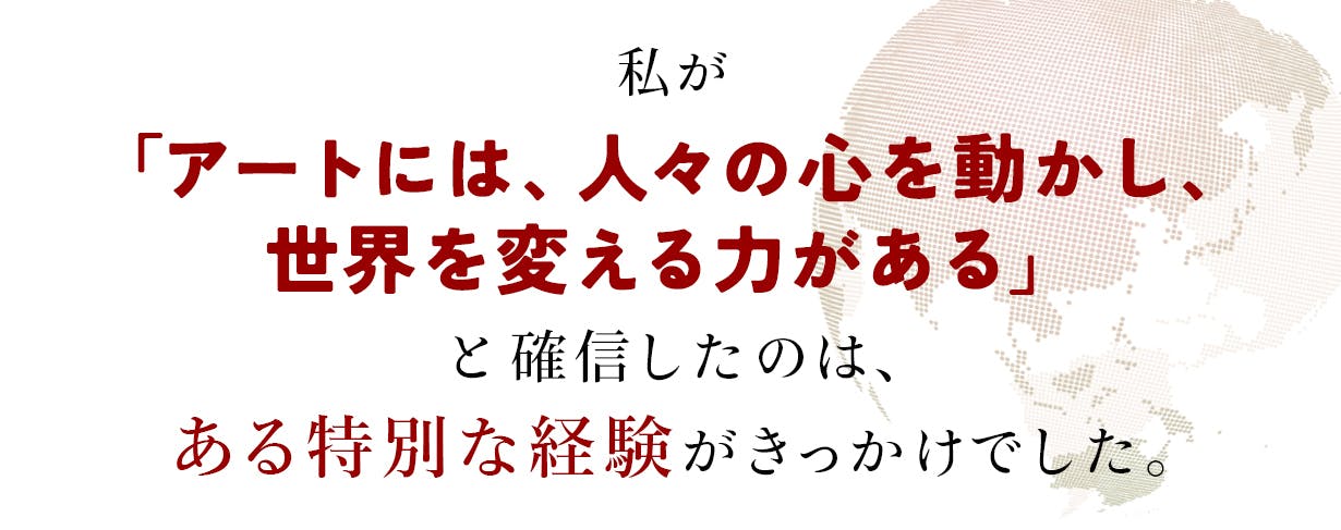 私と共に、アートを通じて世界に貢献する新しい価値の共創者として、このプロジェクトに参加していただきたいのです。