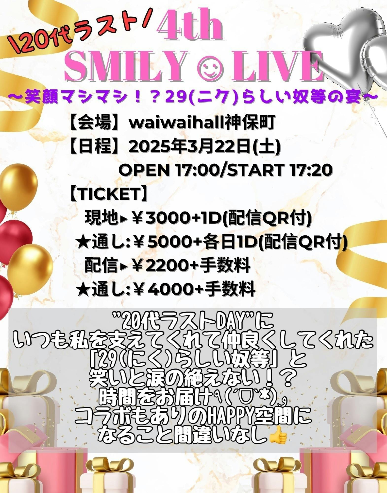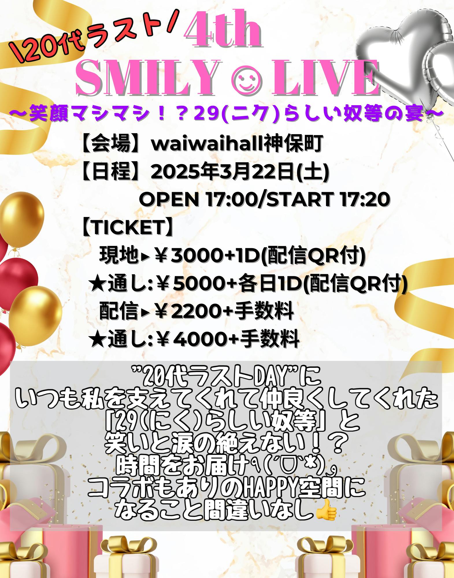 『4th SMILY︎☺︎LIVE 〜笑顔マシマシ!?29(ニク)らしい奴等の宴〜』