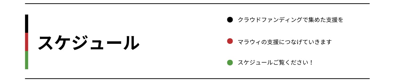今回のプロジェクト下記スケジュールで想定しています。なお、アフリカのご状況などによって前後する可能性はございますので、ご理解いただけますと幸いです。