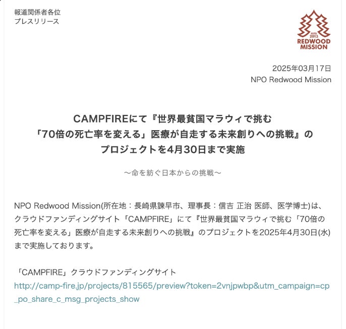 2025/03/18 20:59クラウドファンディングも残り約1ヶ月となってきました。現在の達成率は約30%となっております。もちろん達成を目指しているので、まだまだ満足いく達成率ではないですが、ありがたいことに現在私たちの活動をメディアにも注目いただいております。知人よりプレスリリースを進められ、やってみましたが、多くのメディアの方から連絡をいただいております。(*プレスリリースの一部抜粋を添付)これまでここまで注目を浴びることがなかったからこそ、ここまでの注目を嬉しいと思うと同時に、私たちにとってもチャンスで逃してはいけない。とプレッシャーも感じています。ですが、覚悟を決めて始めたこのクラウドファンディングでまずは達成をみなさんを目指したいと思っていますので、ぜひ皆さん引き続き拡散等のご協力お願いします。プレスリリース一部抜粋 もっと見る