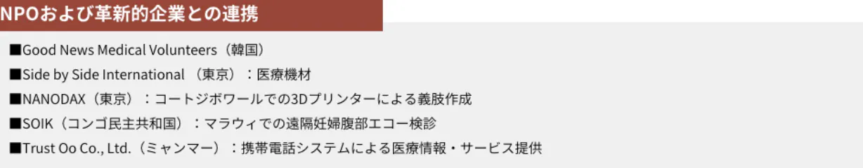 これは、医療発展の遅れた国に「未来の医療自走モデル」を示す画期的な試みです。
