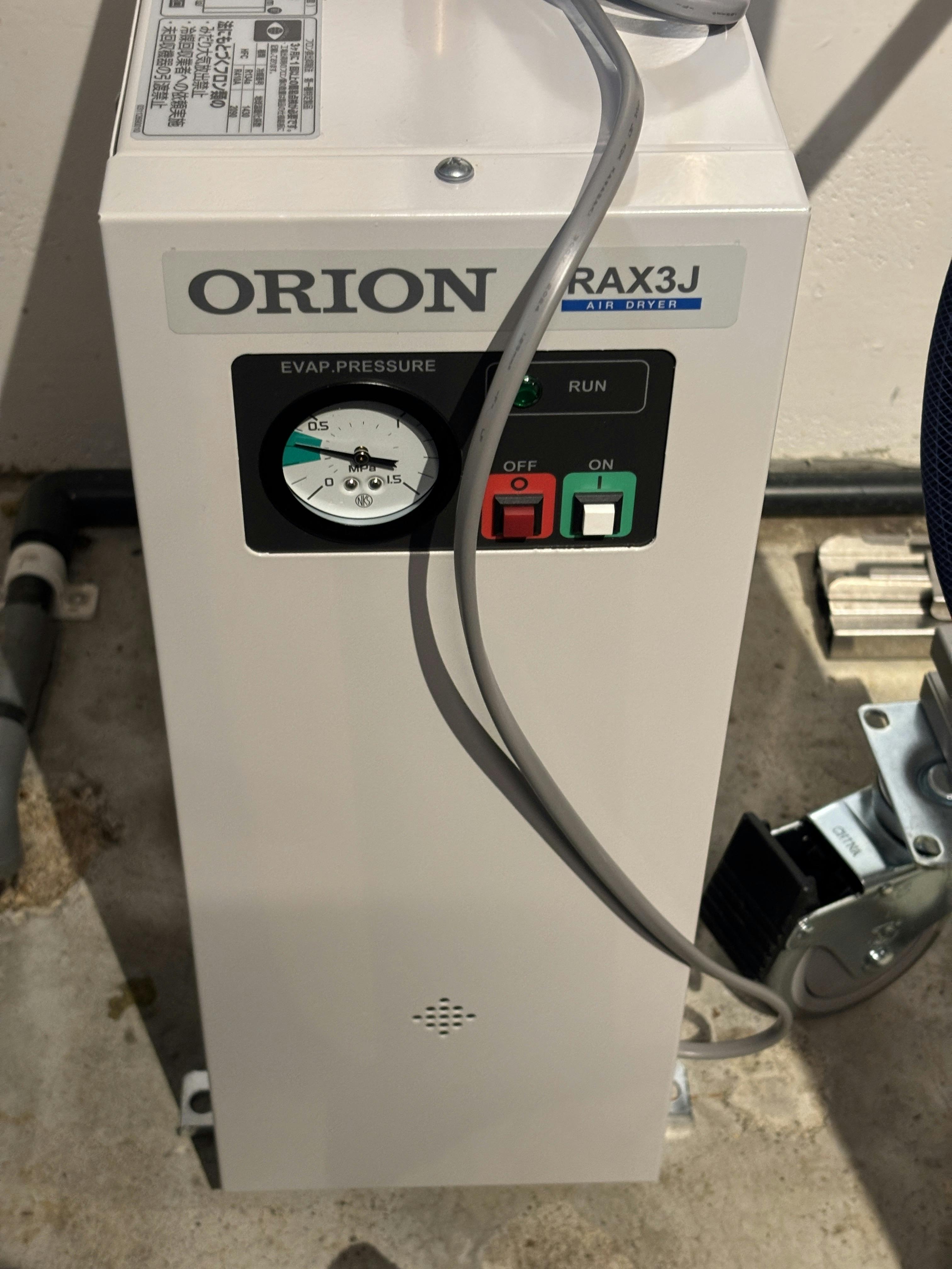 Orion社製のエアードライヤー (瓶詰め機械の故障とならないように結露防止)と、