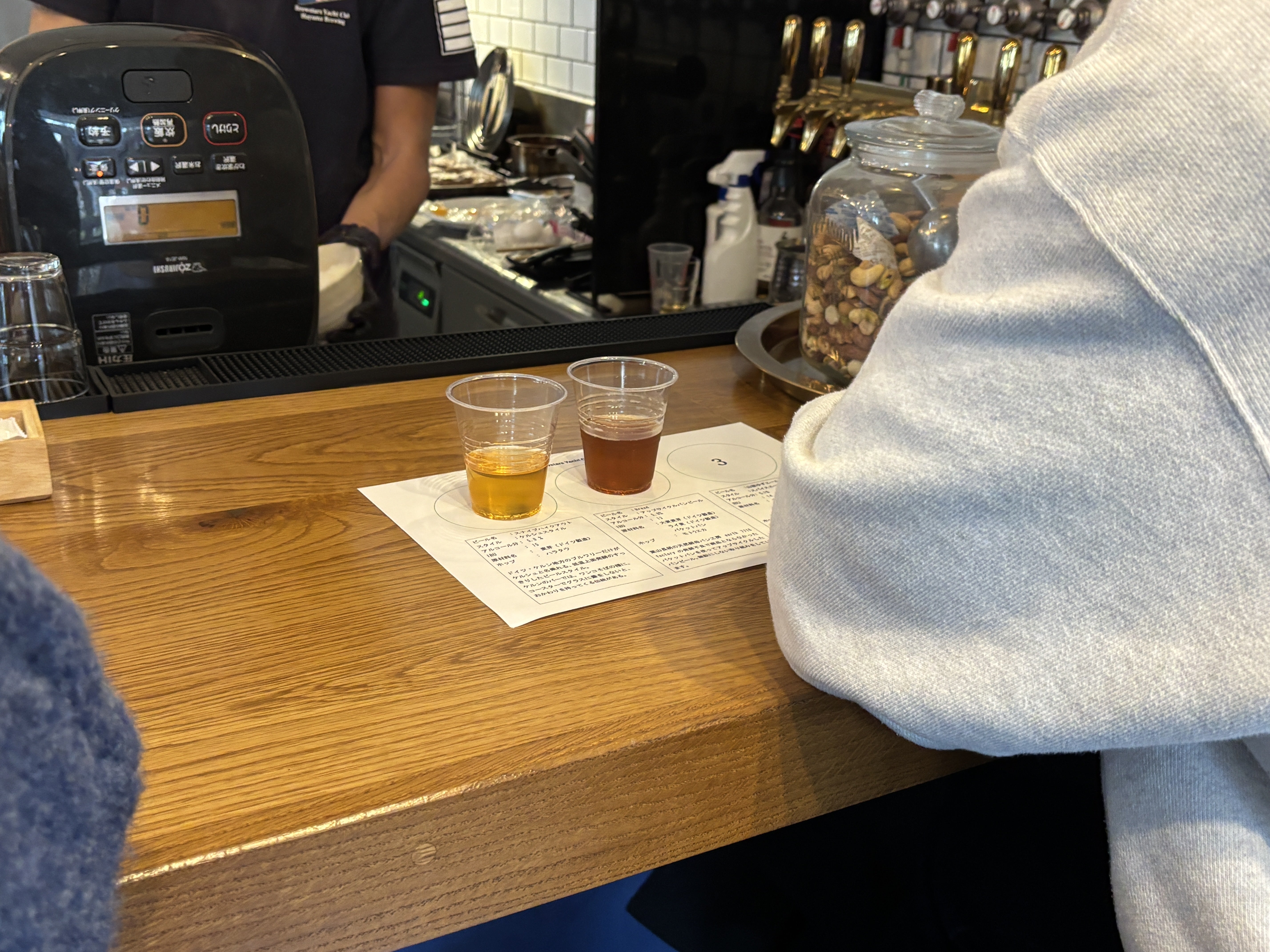20名ほどの参加者が、京急三崎口駅に集合し、三浦ブルワリーさん(三崎)で試飲+工場見学、すかなごっそで休憩され、お昼に当店で、3種飲み比べ+ランチ(ロコモコプレート)と小さい工場の見学、そこから横須賀のポートマーケットに移動されて、横須賀ビールのtap roomで試飲&お買い物で解散という半日スケジュールです。