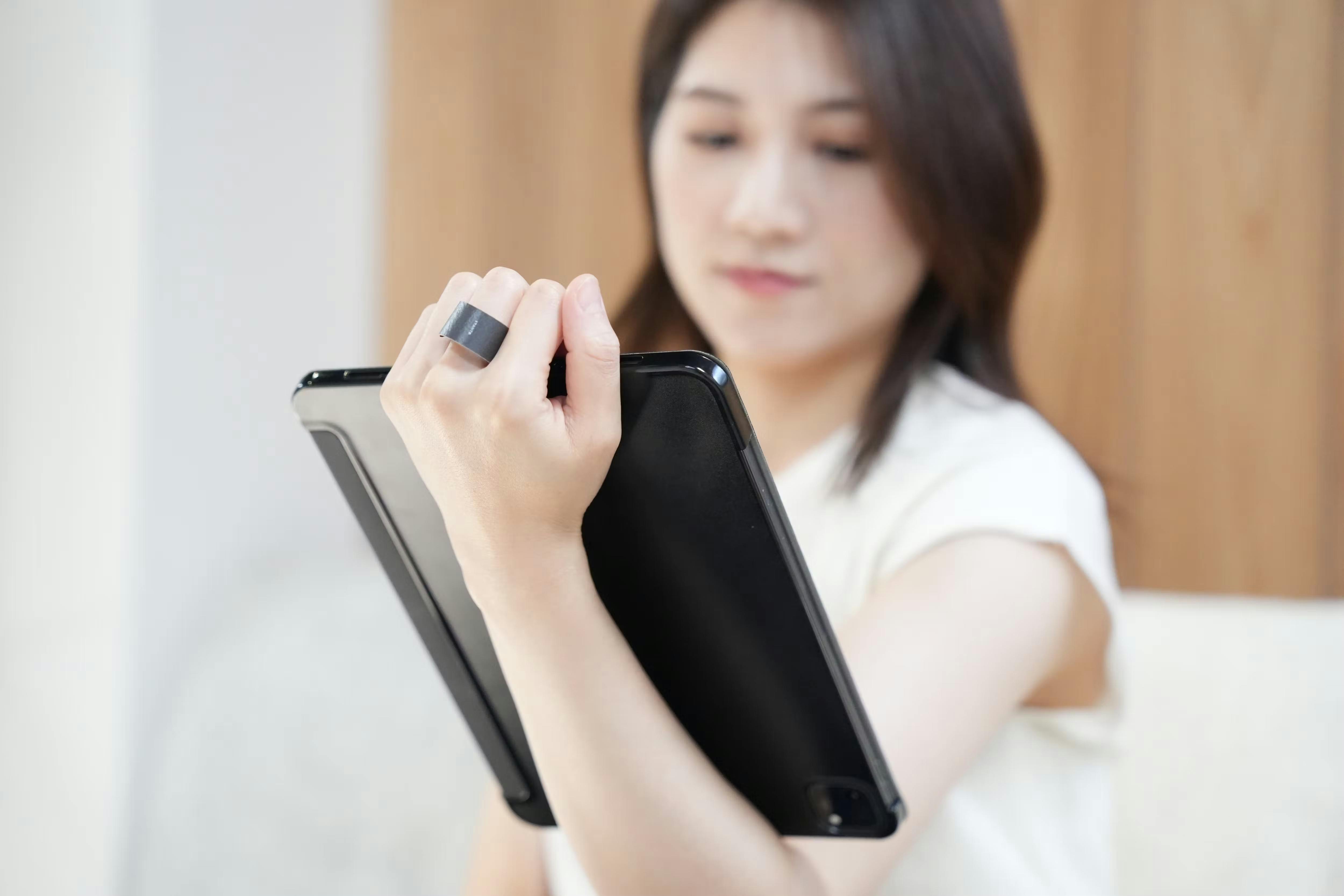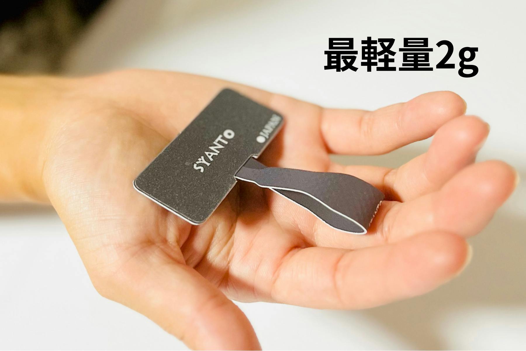 金属製のリングは指に食い込んで痛くなりがちです。スマホを小指に乗せる方も多いですが、これも指の負担がとても大きいです。SYANTOは柔らかいシートで指を包み込むことで、手指への負担を軽減します。