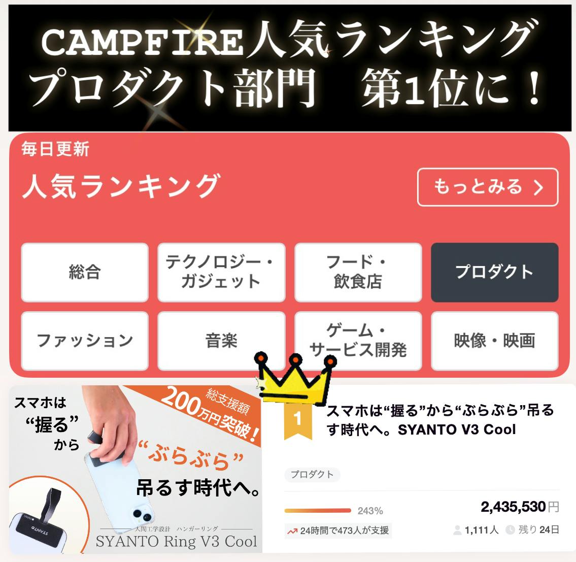 ・ CAMPFIRE「プロダクト」カテゴリ 人気順 第1位 になりました!!!