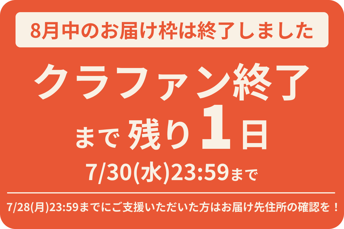 これ以降のご支援は、9月発送予定のリターンをご案内しております。