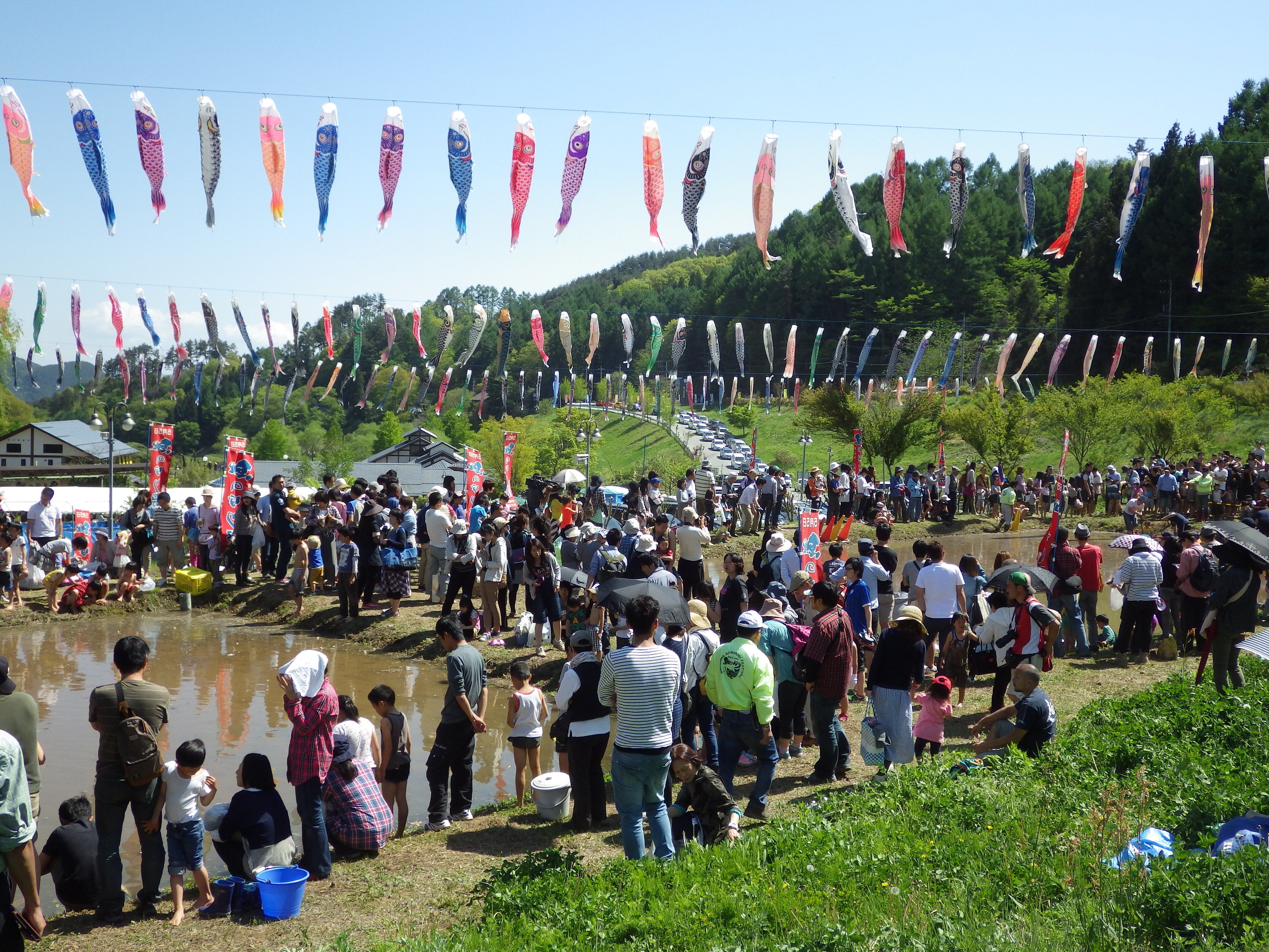 そして、この地ならではの棚田を活用した「泥んこカヌーレース」や「鯉のつかみ取り」を実施。