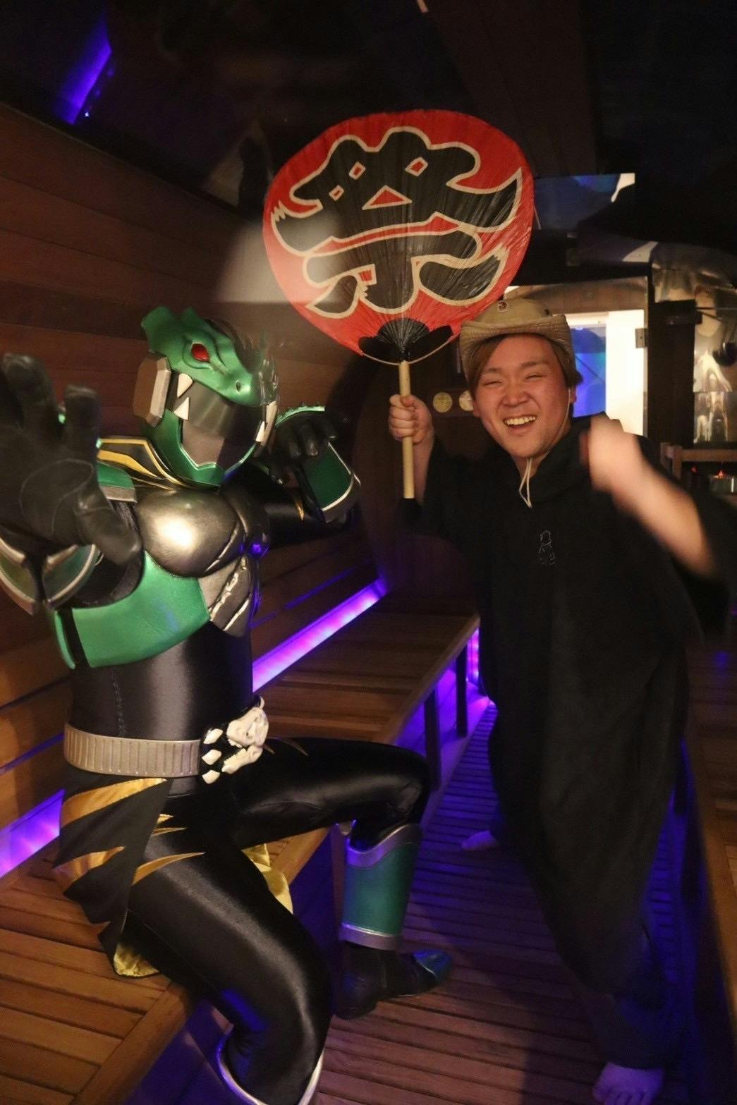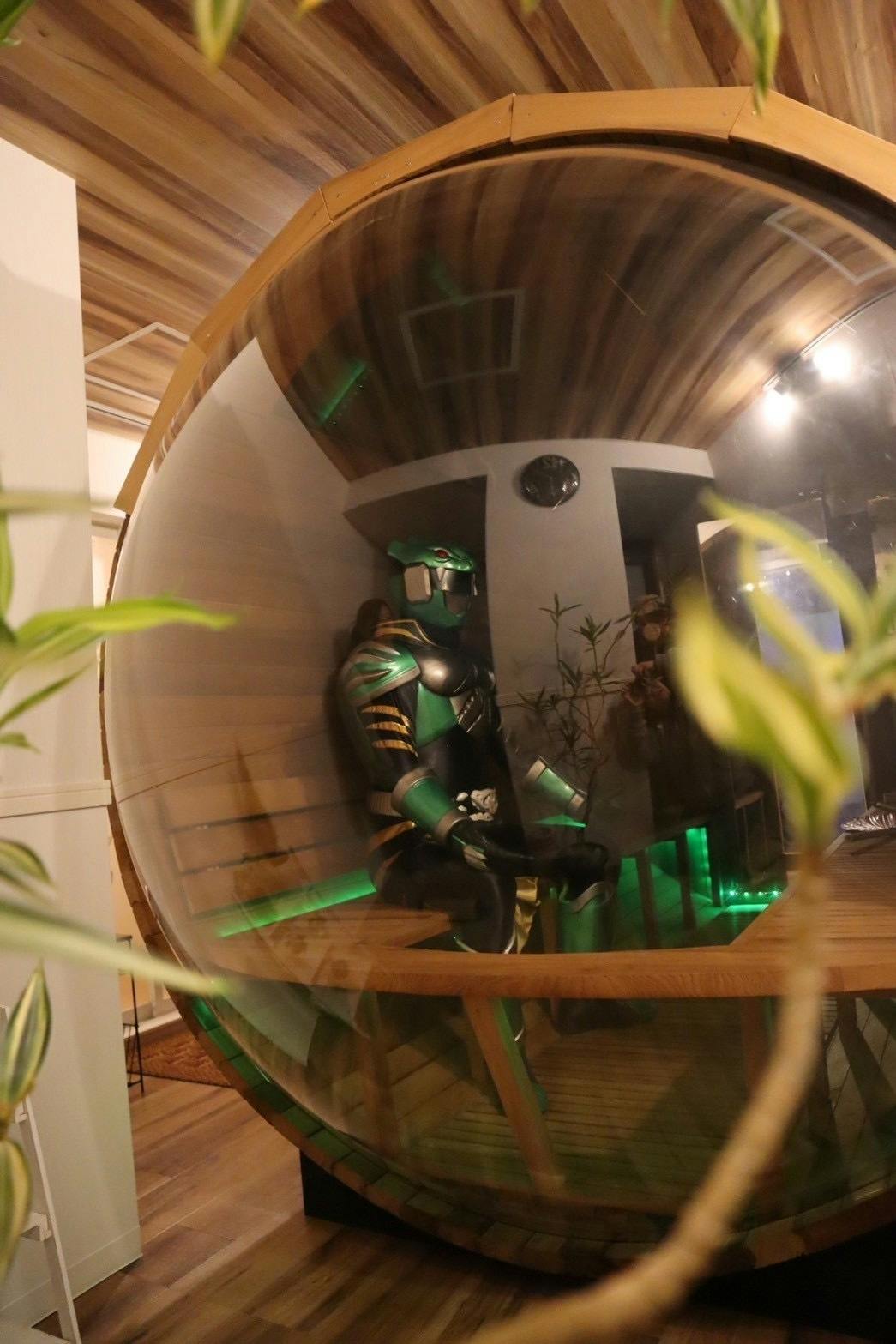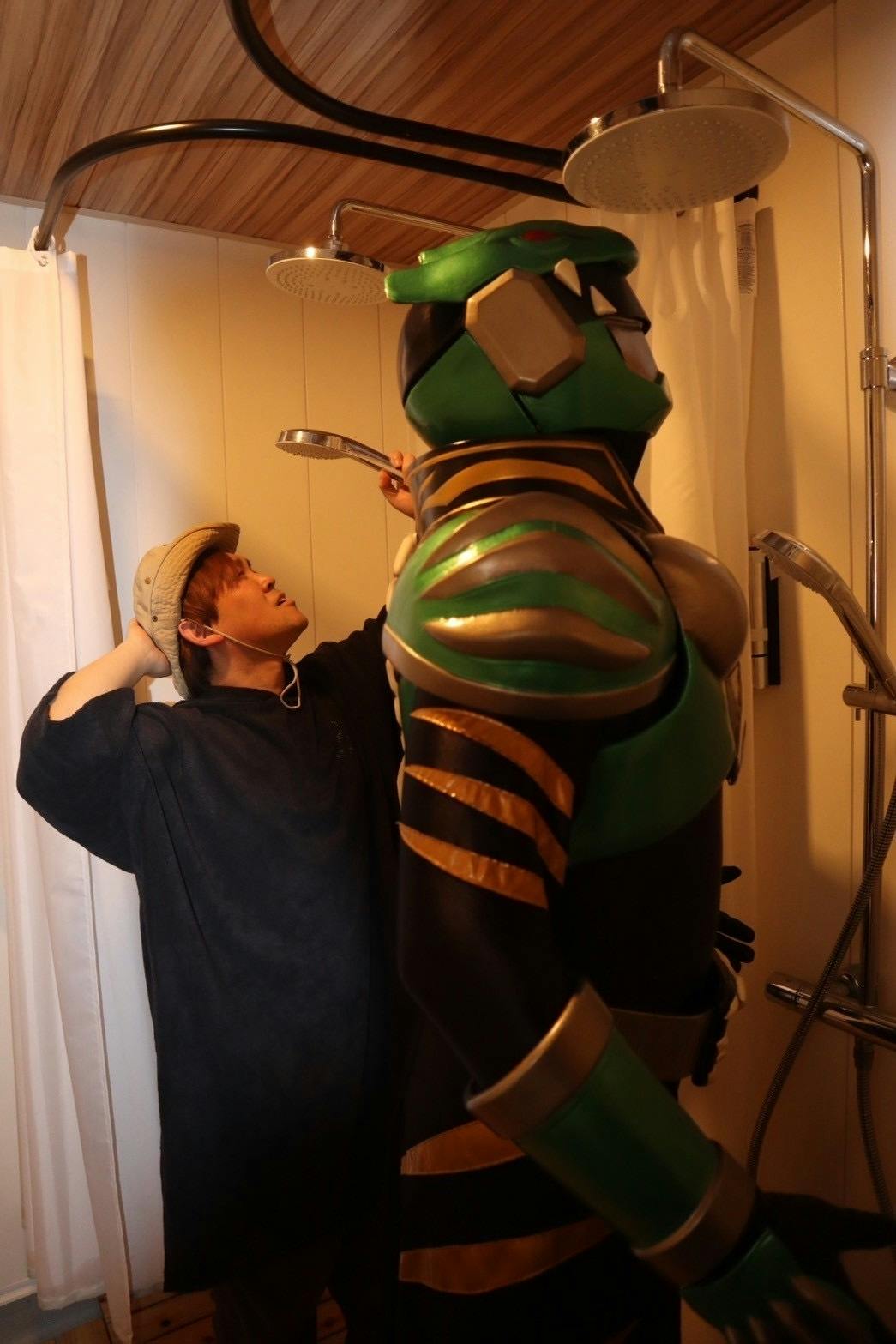 ※今回撮影の為、変身したままサウナに入っております。サウナご利用の際は変身を解除してポンチョに着替えてお入りください。